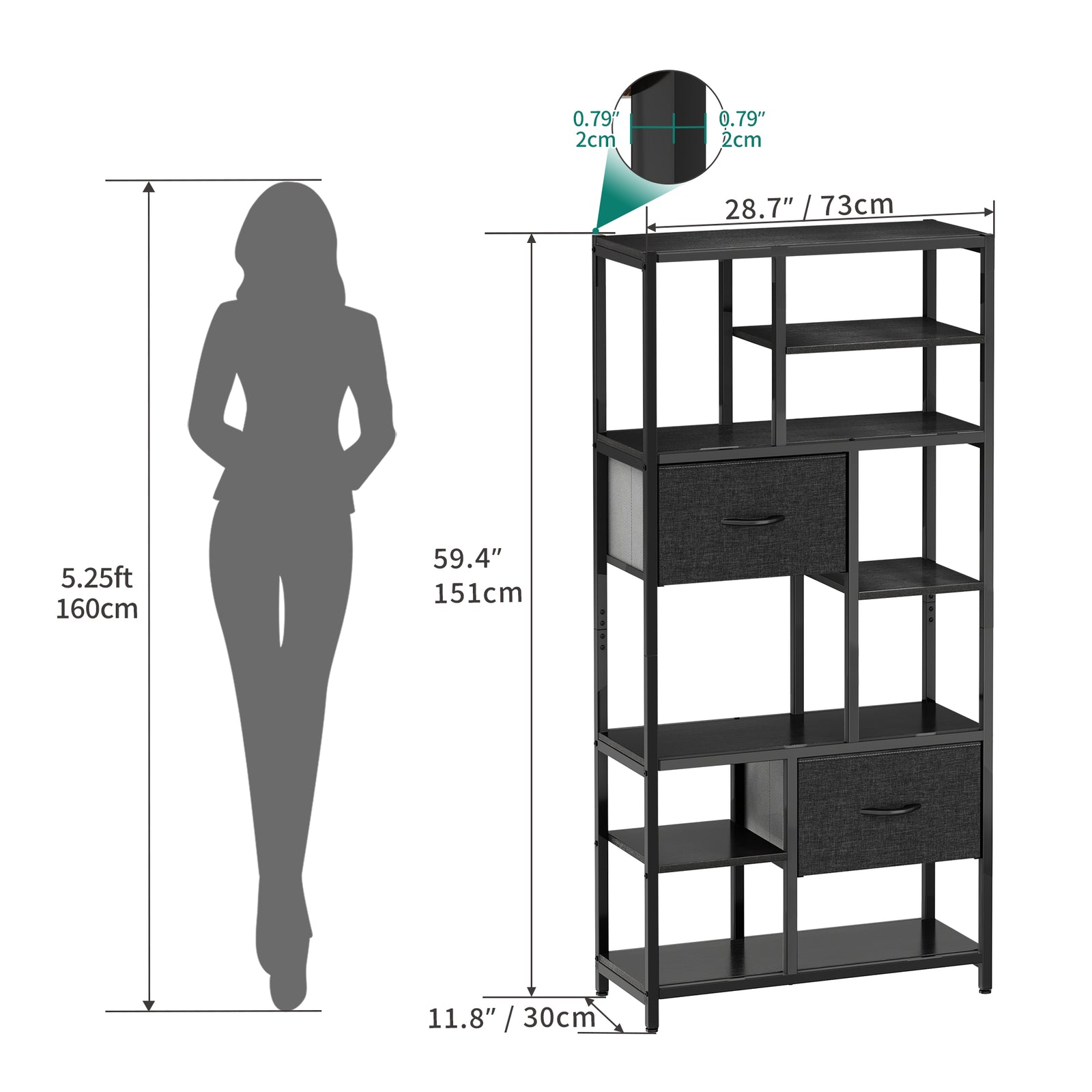 7 Tier Bookcase Bookshelf with Drawer Shelving Unit Storage Rack for Living Room