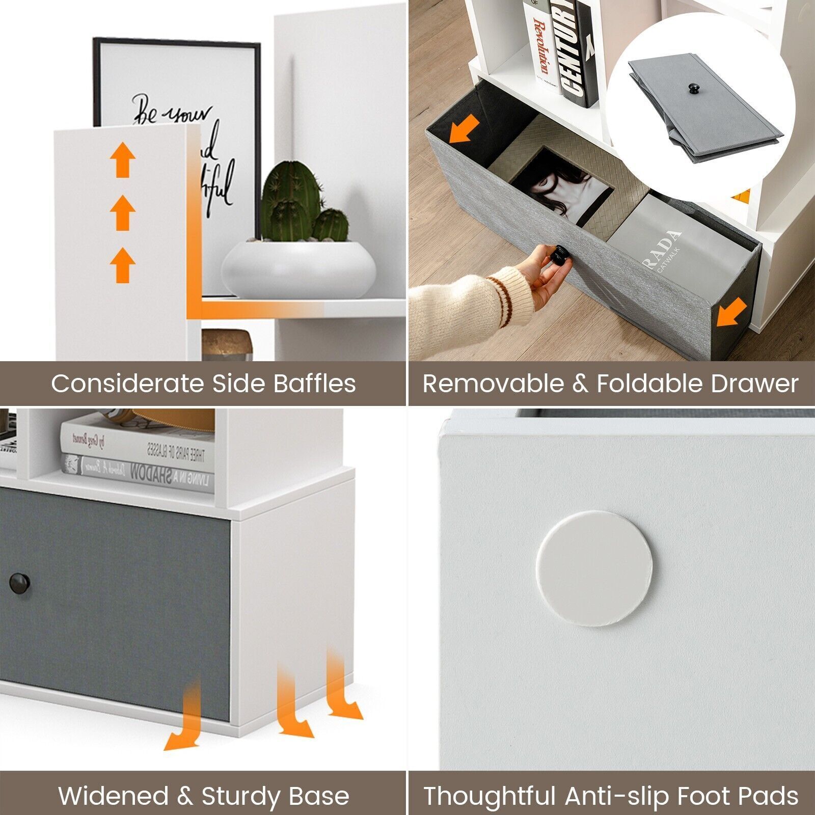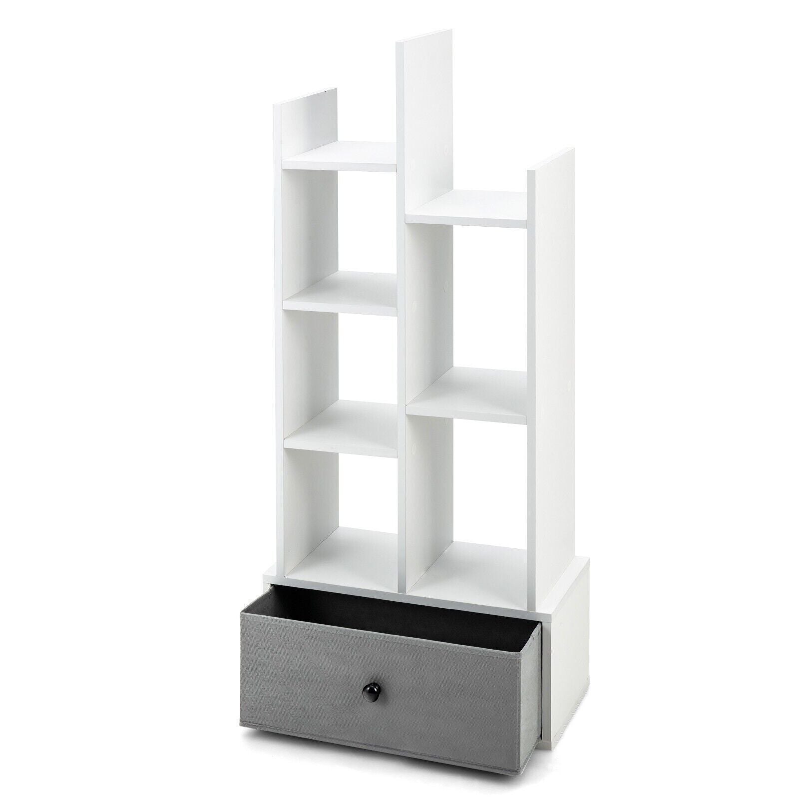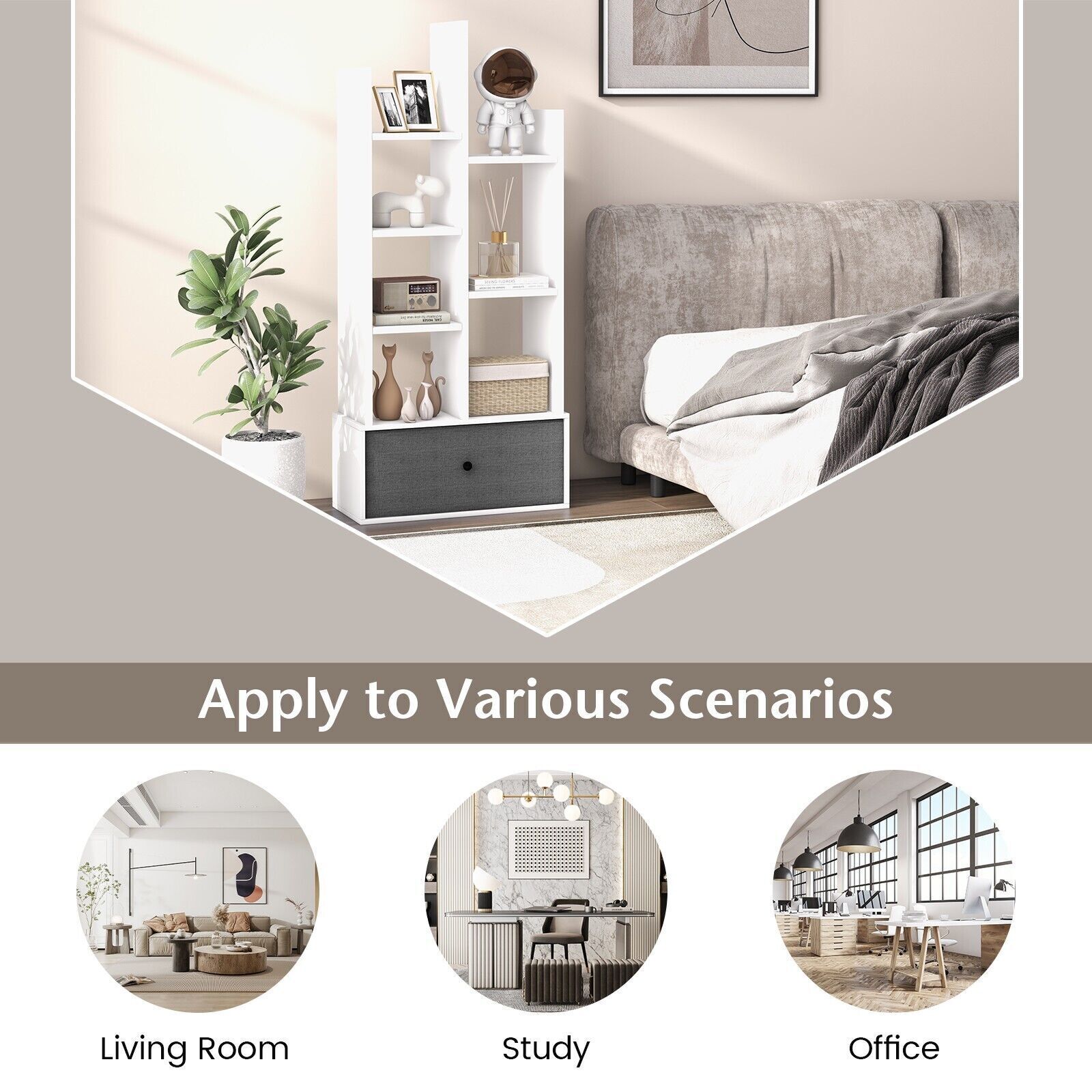 7 Tier Bookshelf Open Storage Wood Bookcase Organizer Display Shelf w/ Drawer