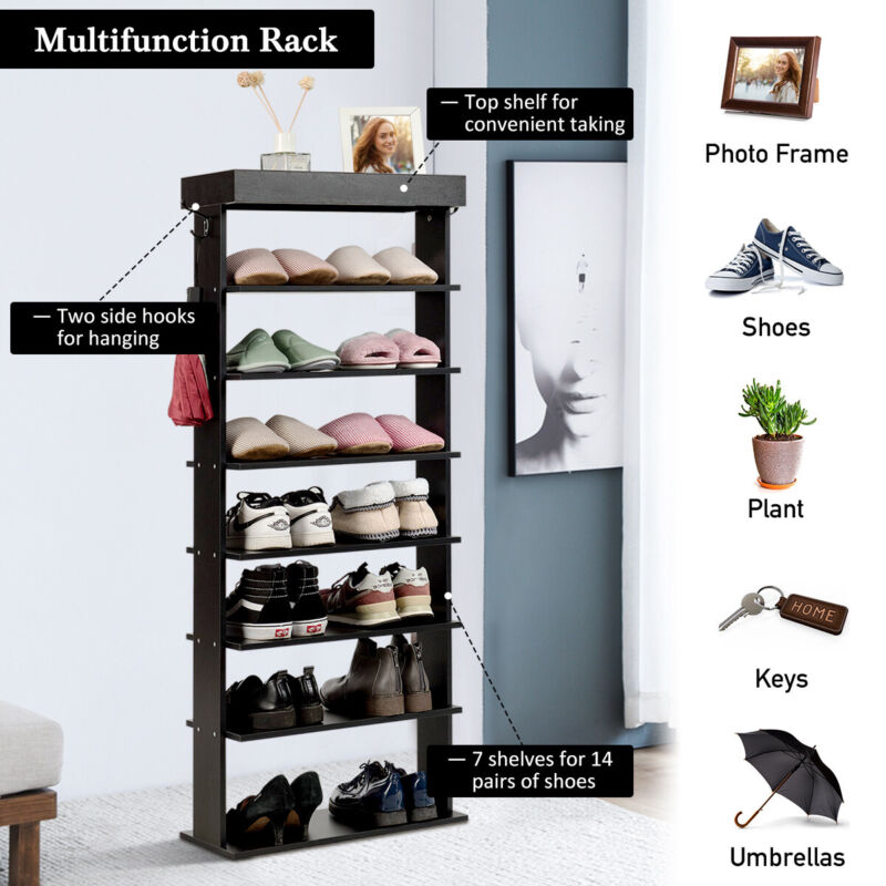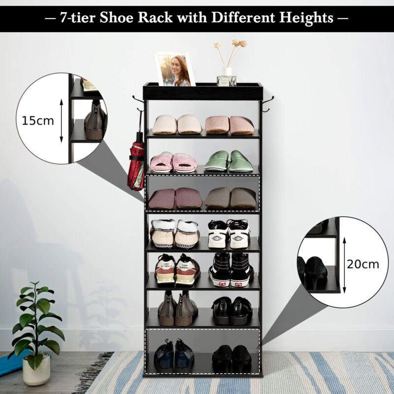 7-tier Double Shoe Storage Tower Organiser Unit Home Display Shelf Rack Stand