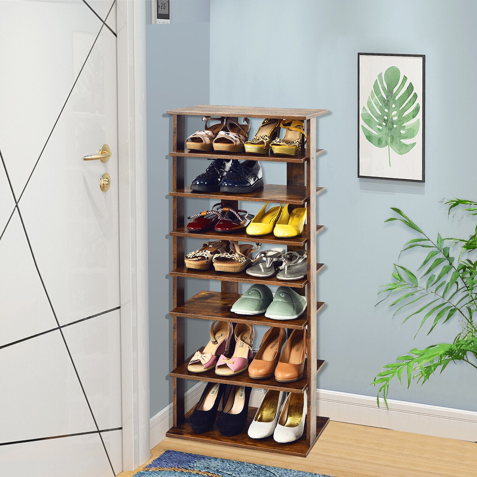 7-tier Double Shoe Storage Tower Organiser Unit Home Display Shelf Rack Stand