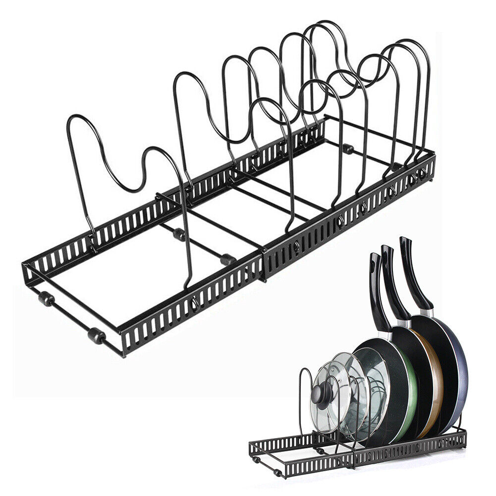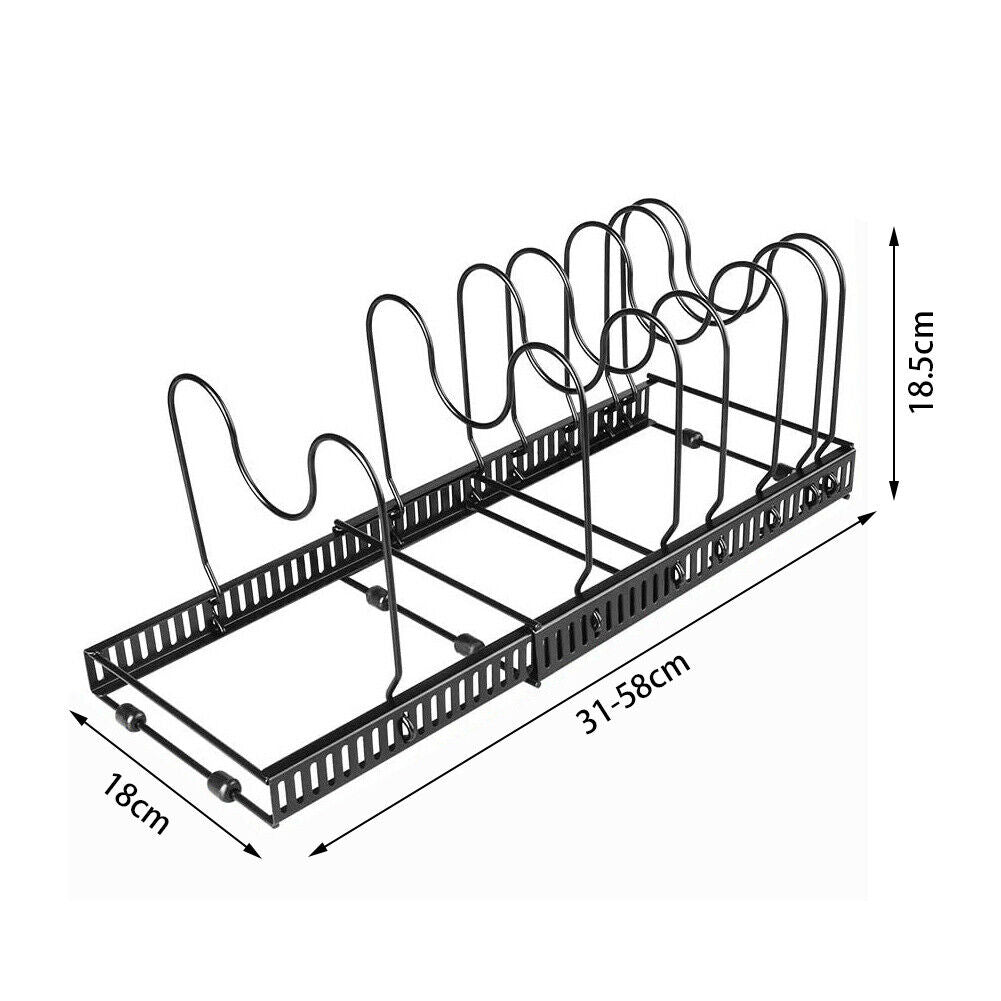 7 Tier Saucepan Pan Lids Storage Rack Cupboard Cabinet Kitchen Shelving Expandab