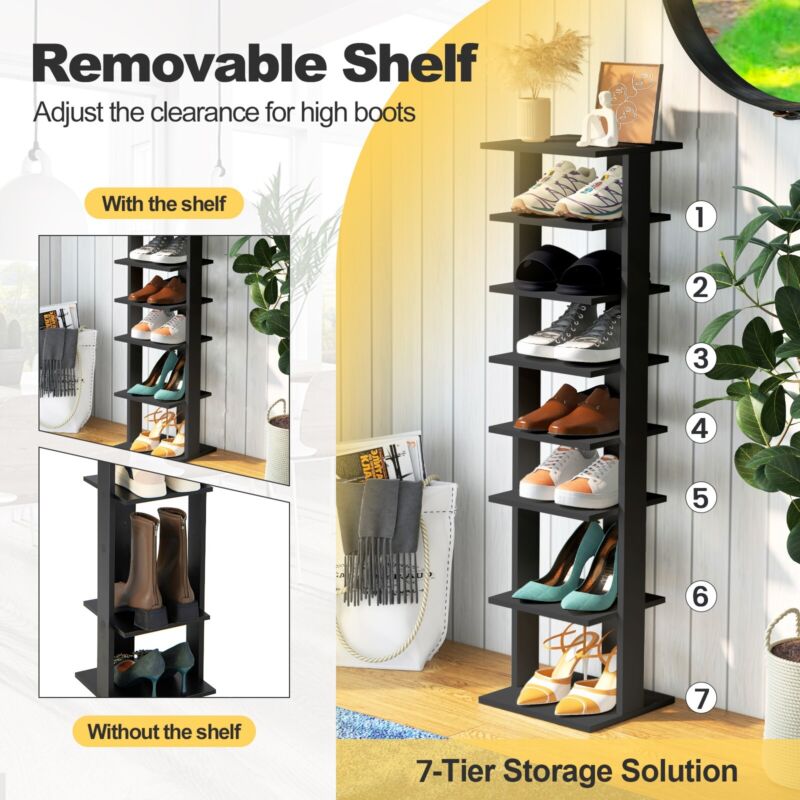7-Tier Shoe Storage Rack Freestanding Organizer Stand Bathroom Dispaly Shelf