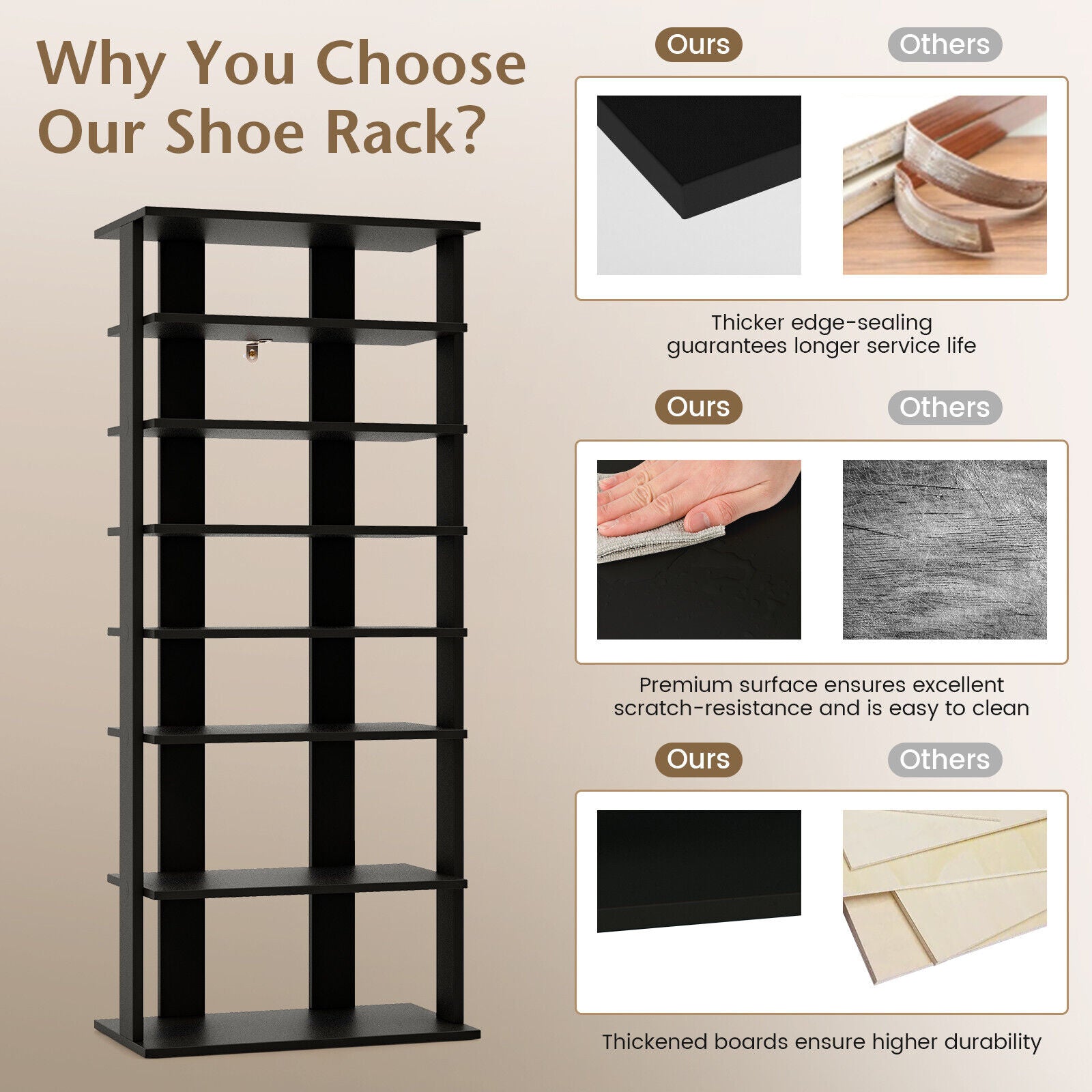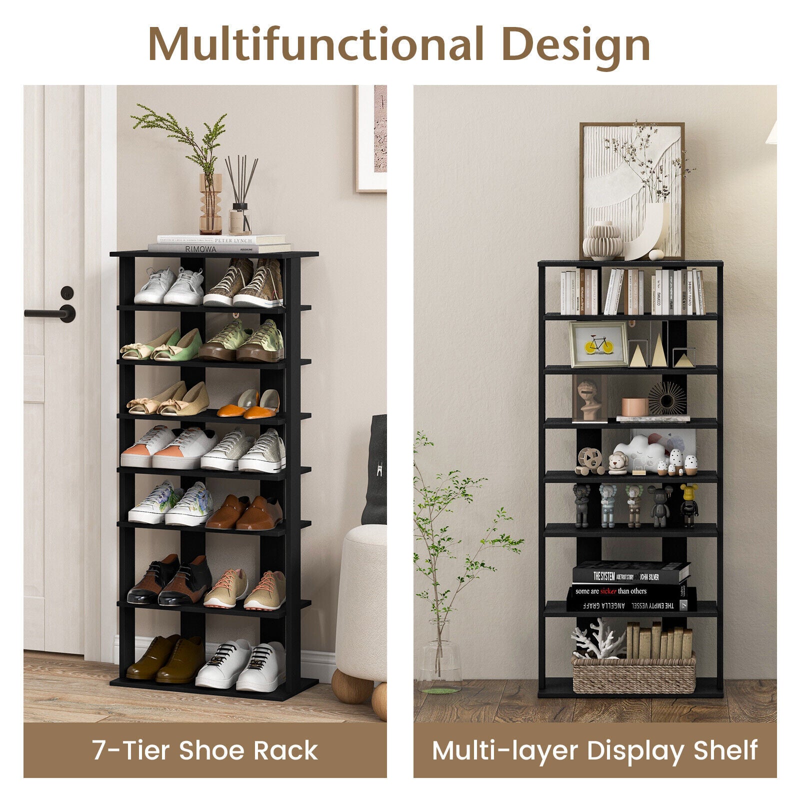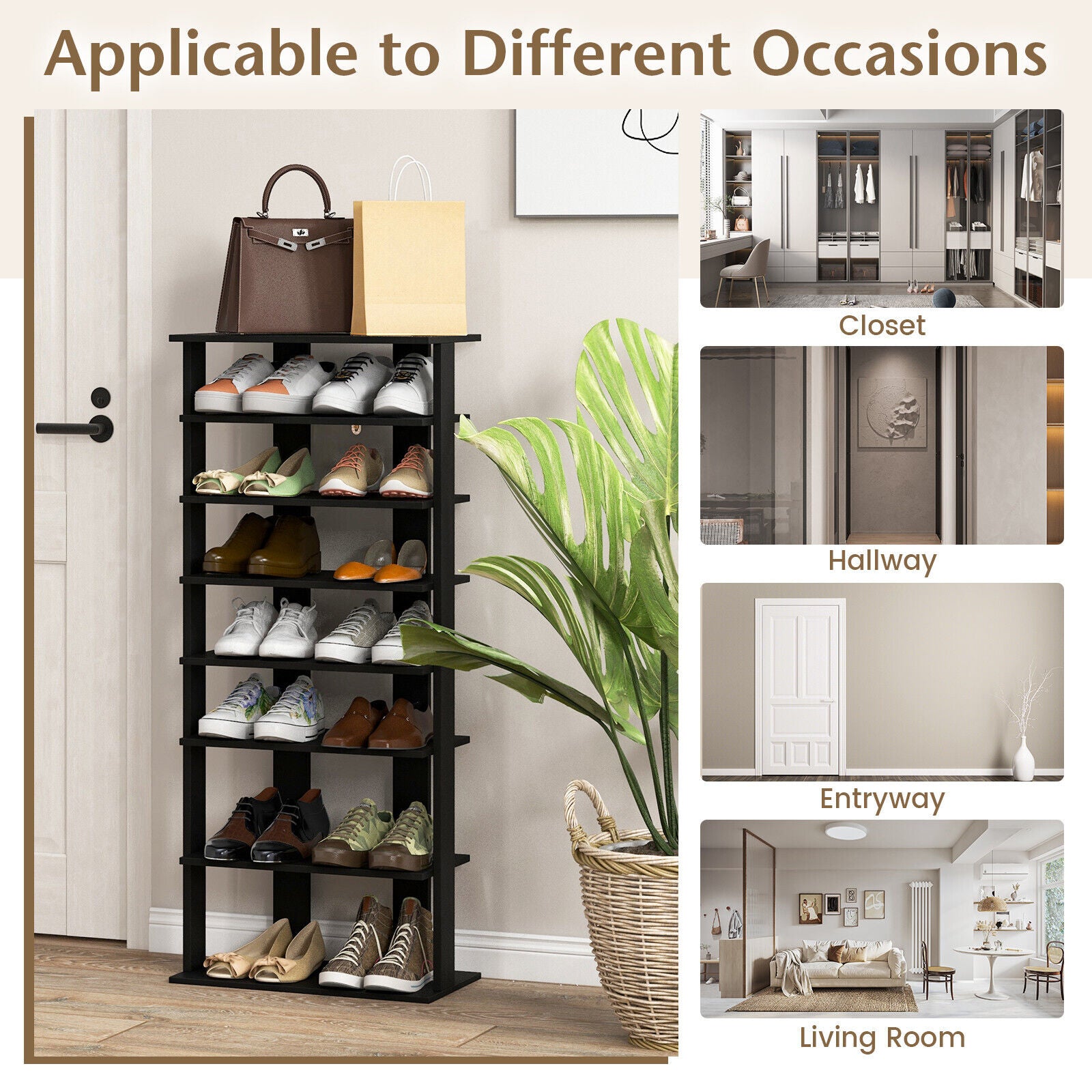 7-Tier Tall Shoe Rack Space Saving Organizer Storage Shelf Double Rows Black