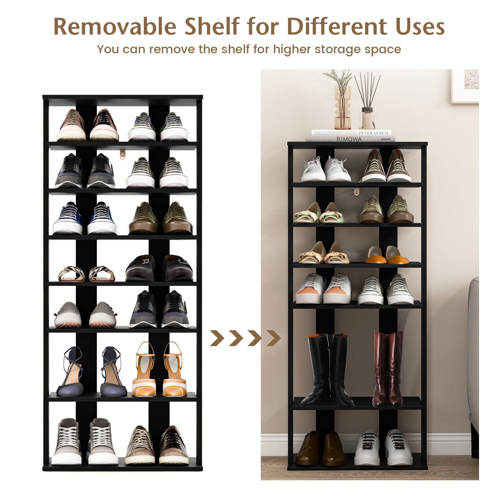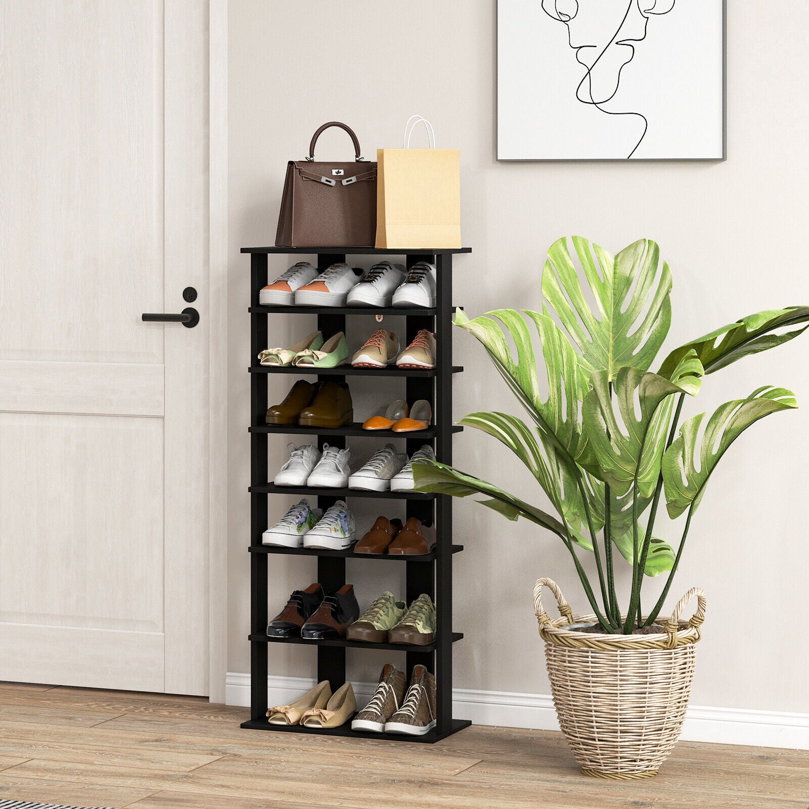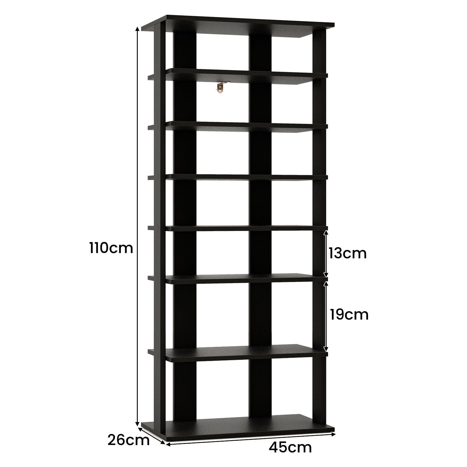 7-Tier Tall Shoe Rack Space Saving Organizer Storage Shelf Double Rows Black