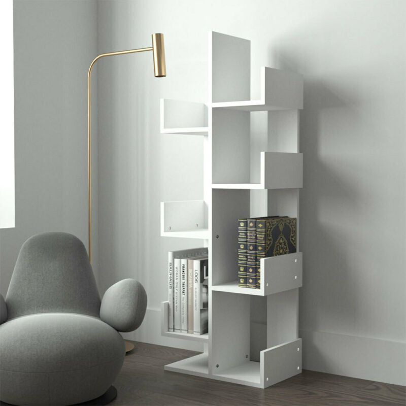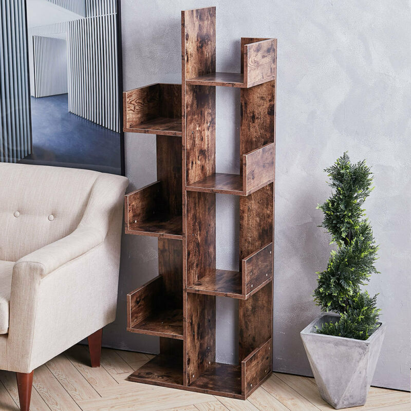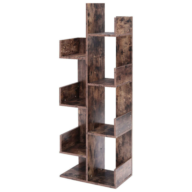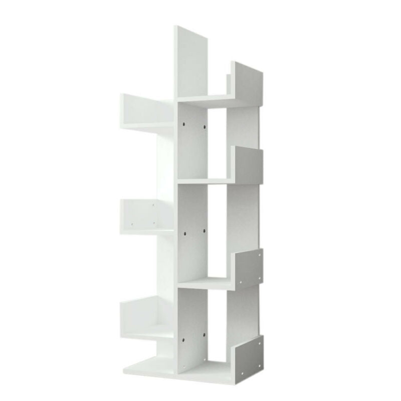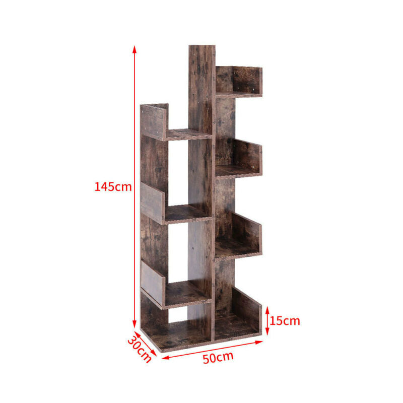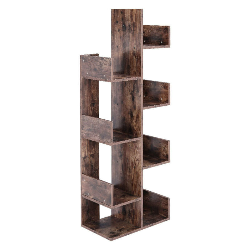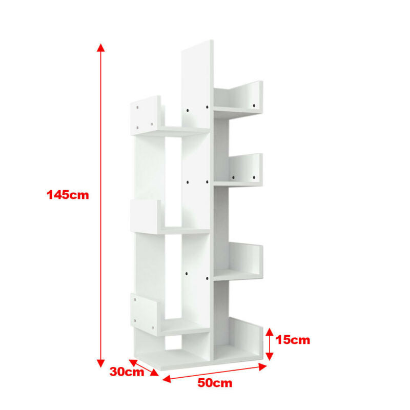 7 Tier Tree Bookcase Bookshelf Floor Standing Wood Shelves Storage Rack Tree NEW