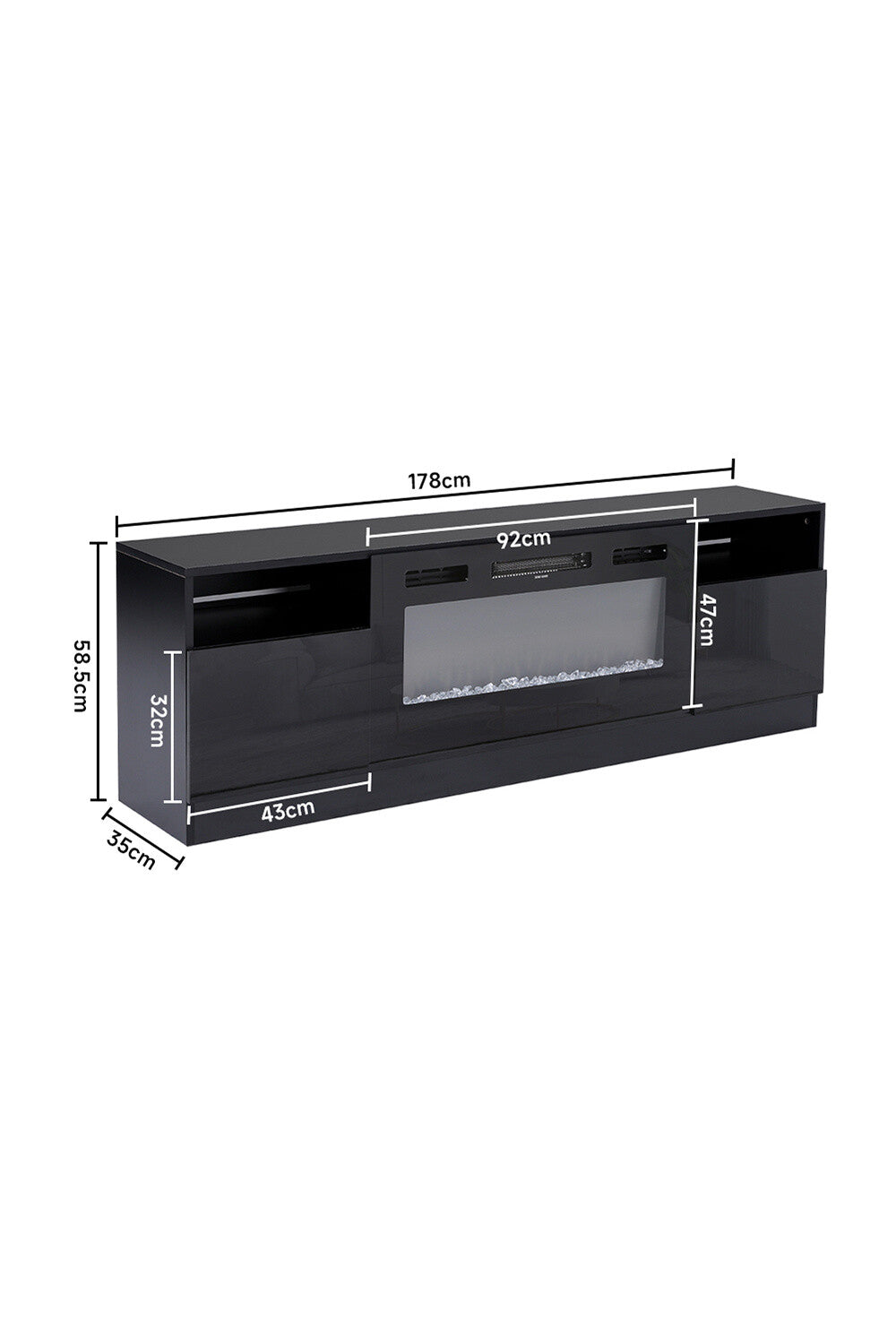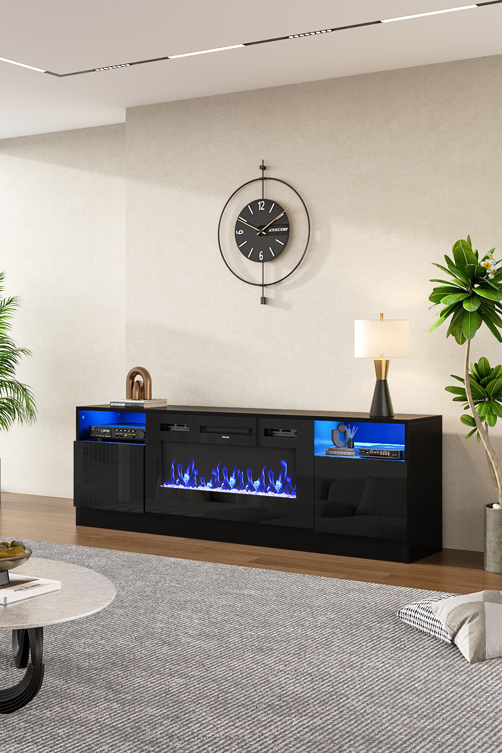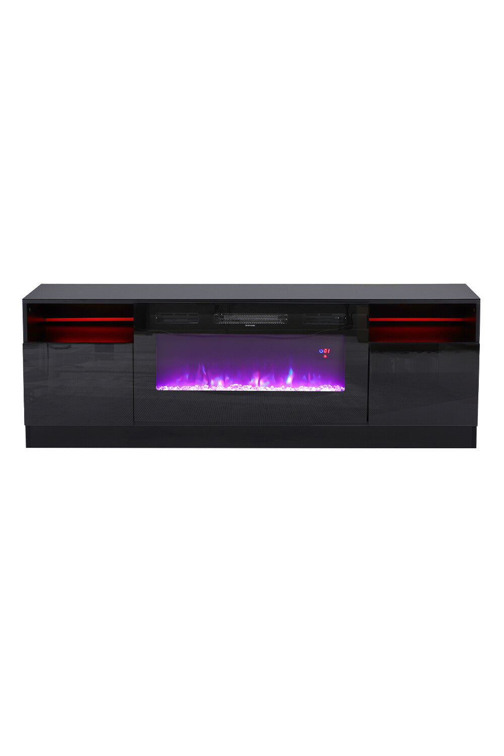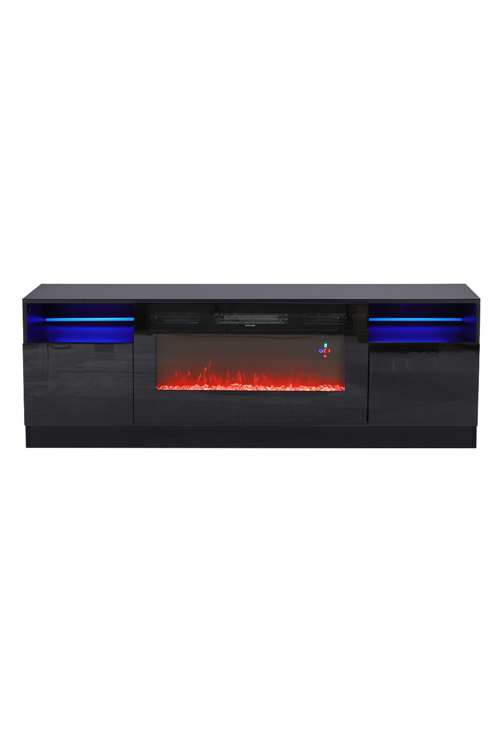 70" Black TV Stand Modern High Gloss & Electric Fireplace Unit Cabinet LED Light