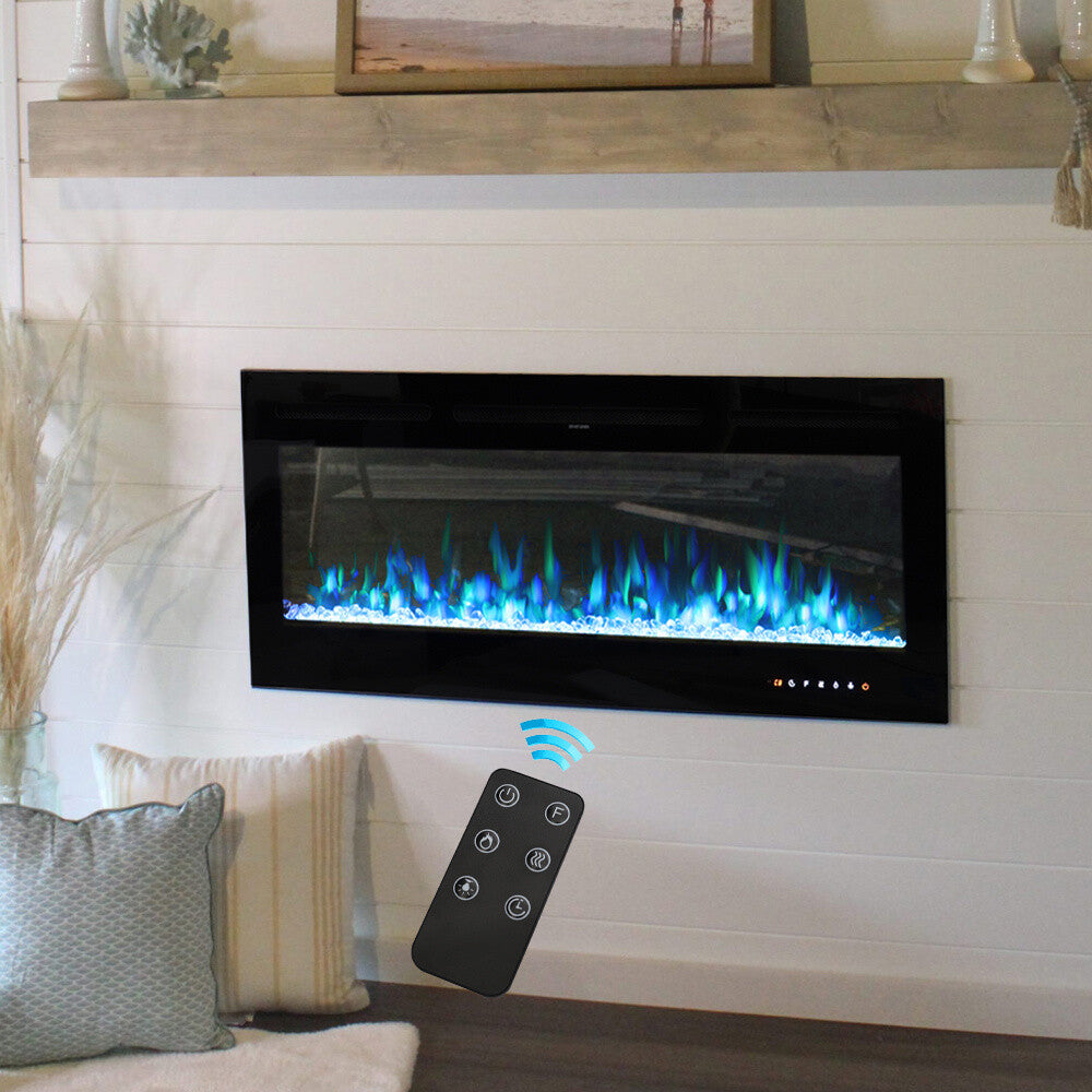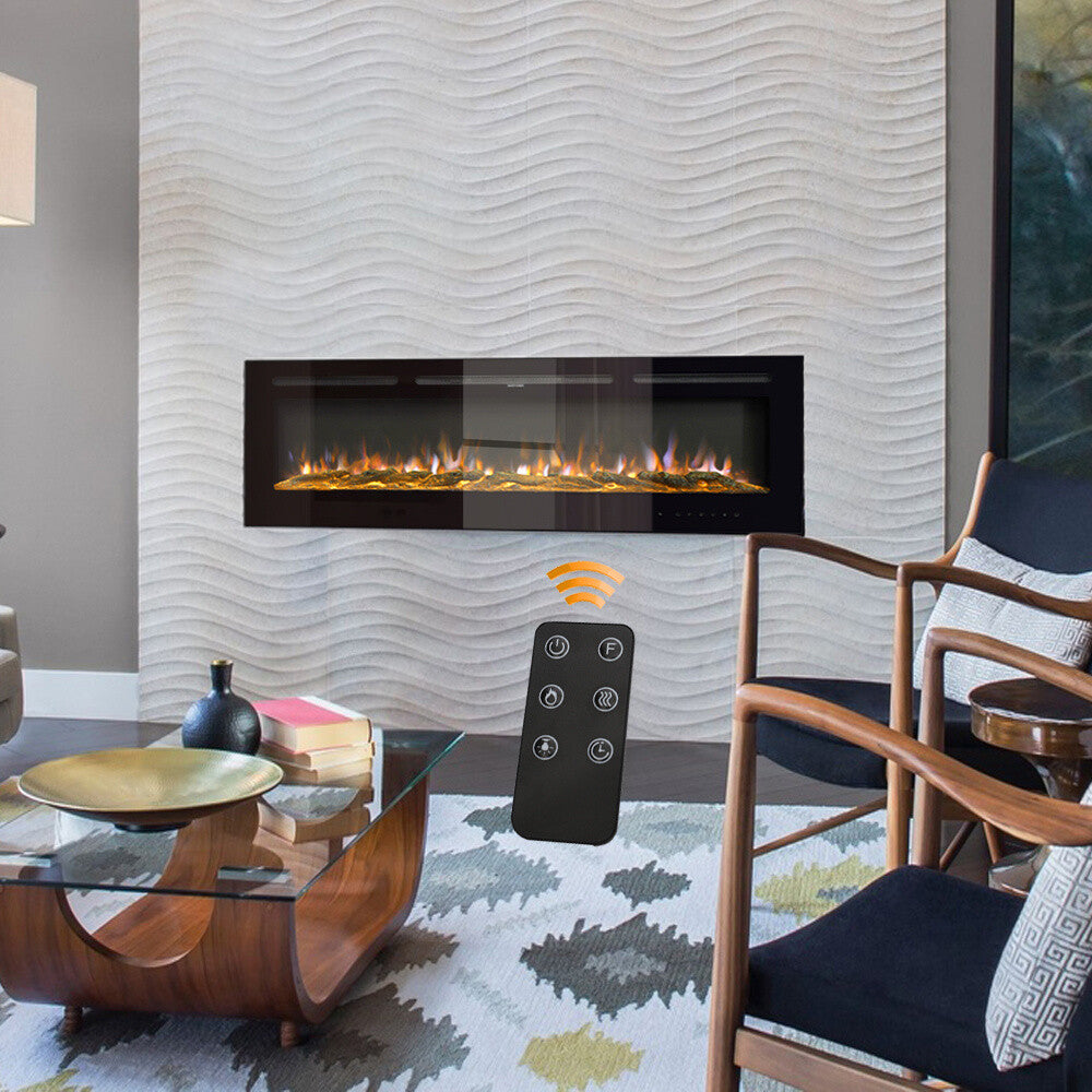 70" Electric Fireplace Heater 9 LED Flame Log Fire Wall Recessed/Insert Remote