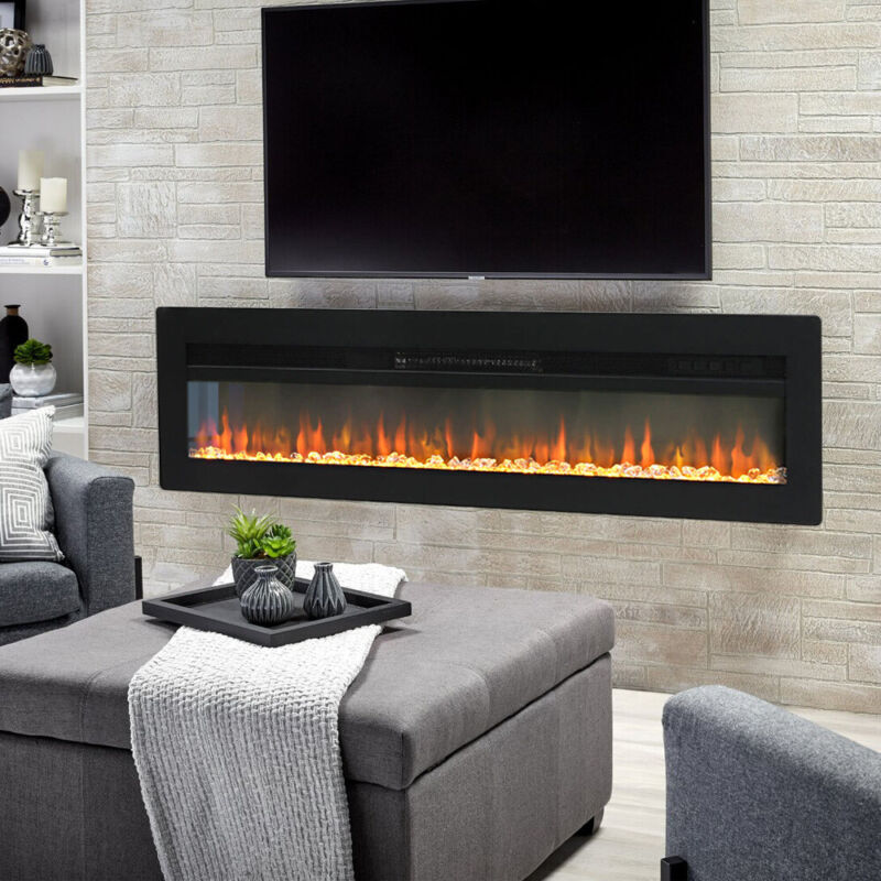 Adjustable Brightness, Adjustable Flame Colors, Adjustable Thermostat, LED Flames, On/Off Switch, Remote Control, Timer, Wall-Mountable, LCD Display, With Natural Pebbles, With Wall Bracket, , Wall Mounted, Inset / Freestanding, Crystal Effect Fire Inlcuded