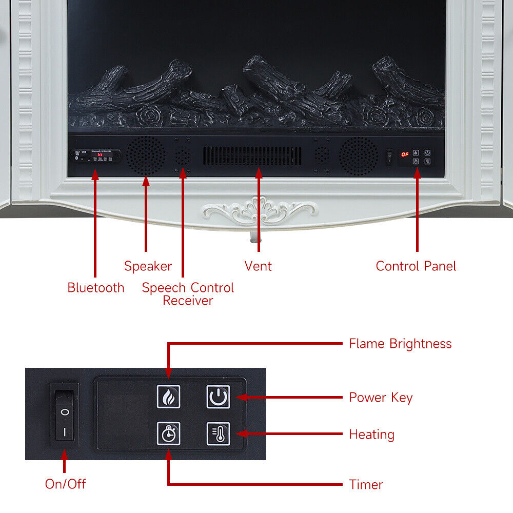 70'' TV Stand Mantelpieces, 30'' Electric LED Fireplace Media Entertainment EO