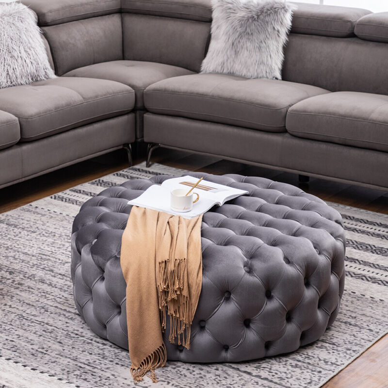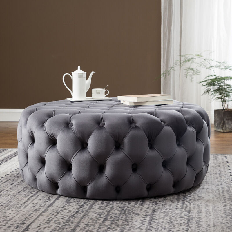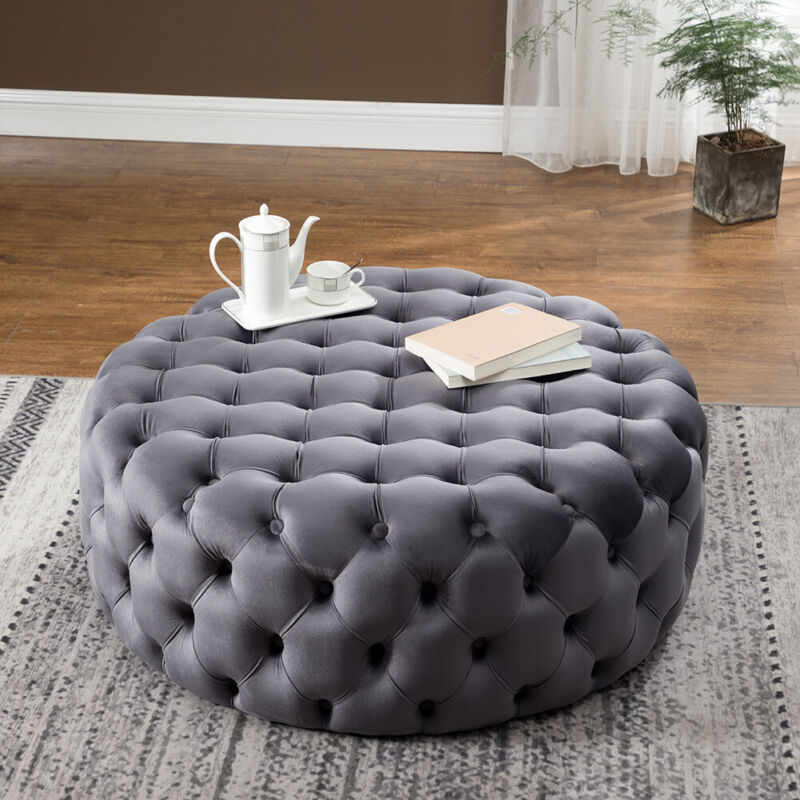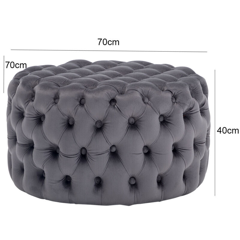 70cm Chesterfield Coffee Table Velvet Upholstered Tufted Round Stool Footstool