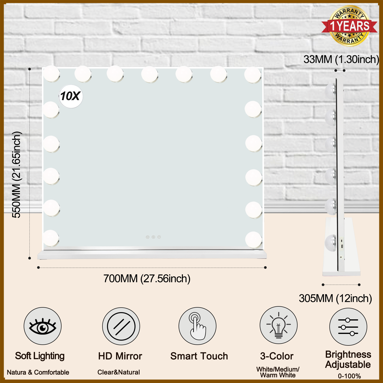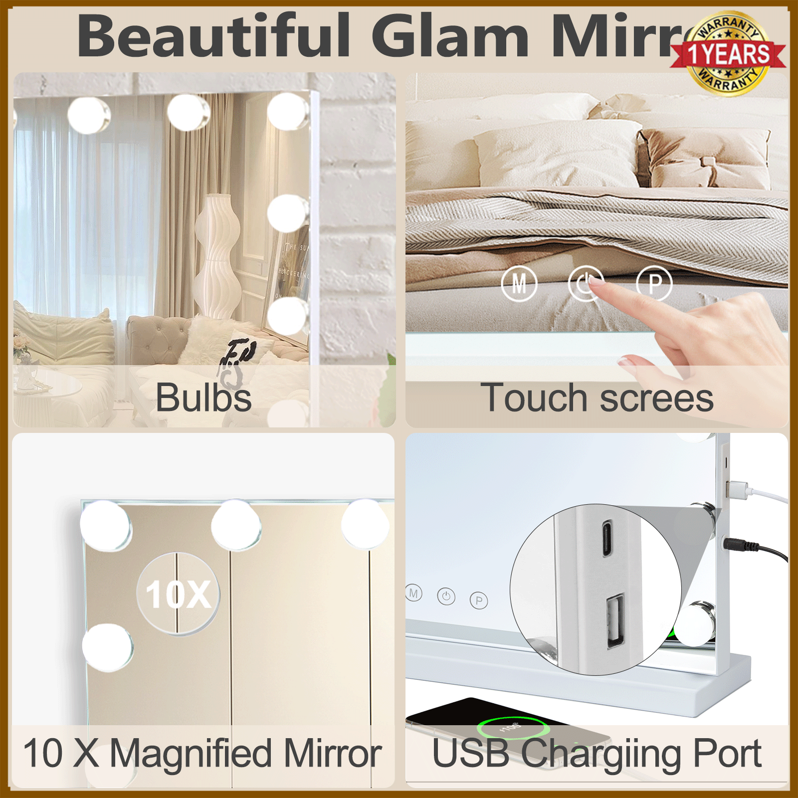 Features Touch Sensor, LED Lighted, Lighted, Tabletop, Wall Mounted, USB Port, Magnifying