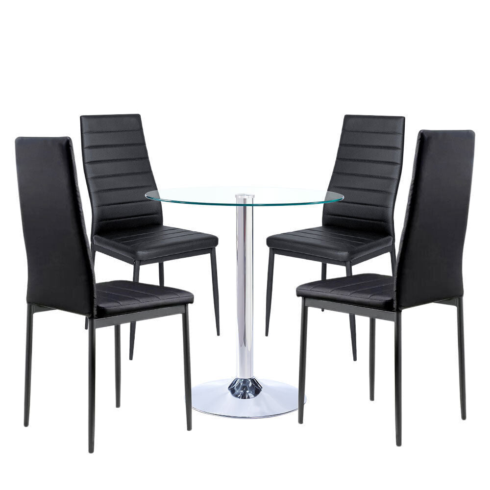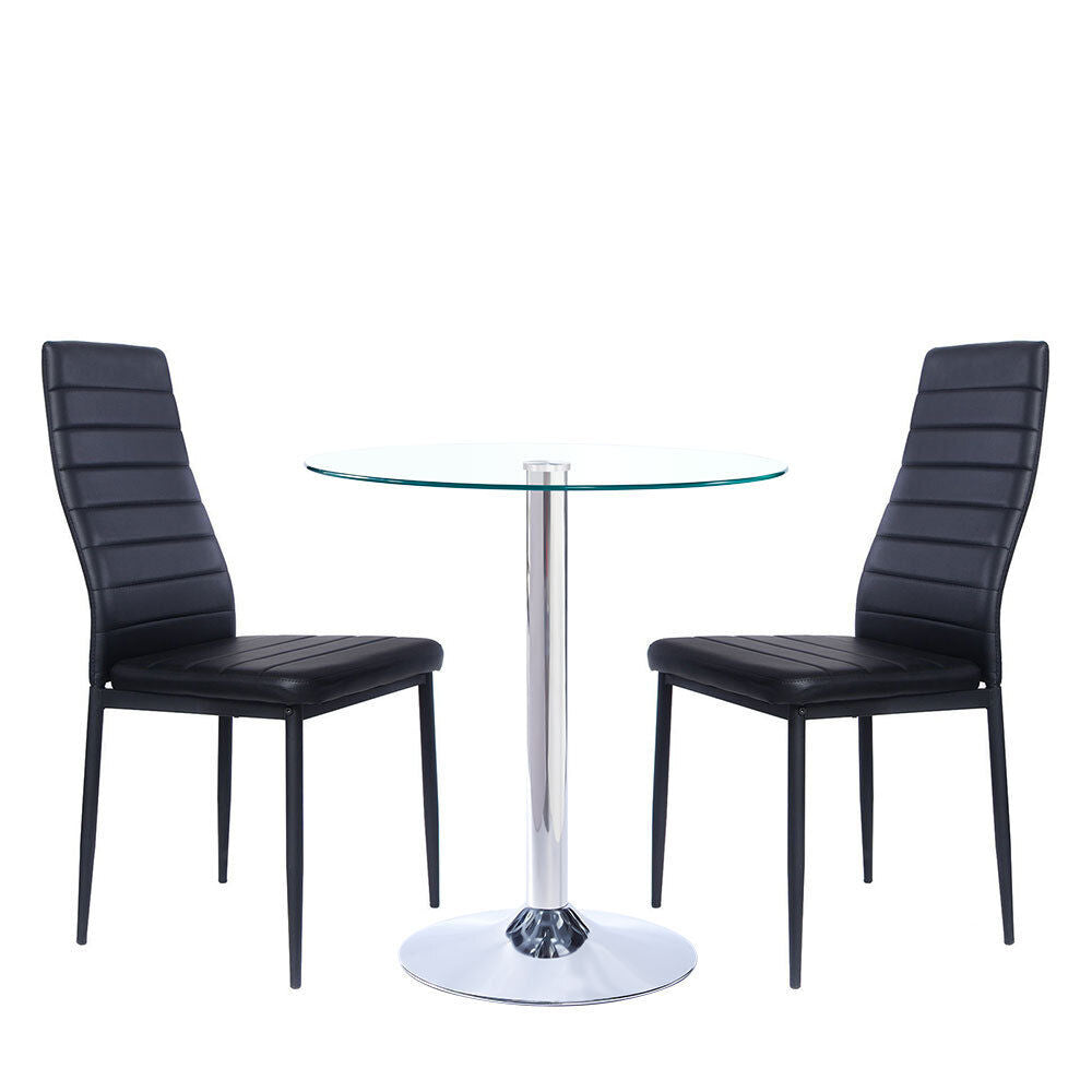 70cm Round Dining Table &2 4 Black Chairs Padded Seat Kitchen Dining Room Lounge