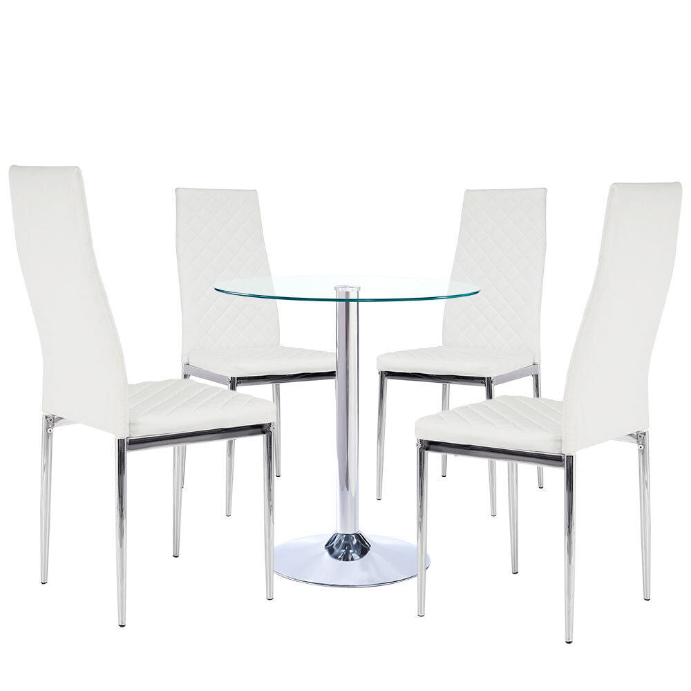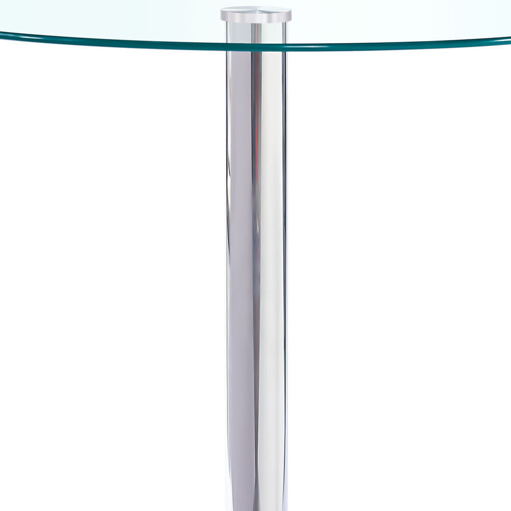 70cm Round Dining Table Glass Top Chrome Pedestal Base Kitchen Dinner Furniture