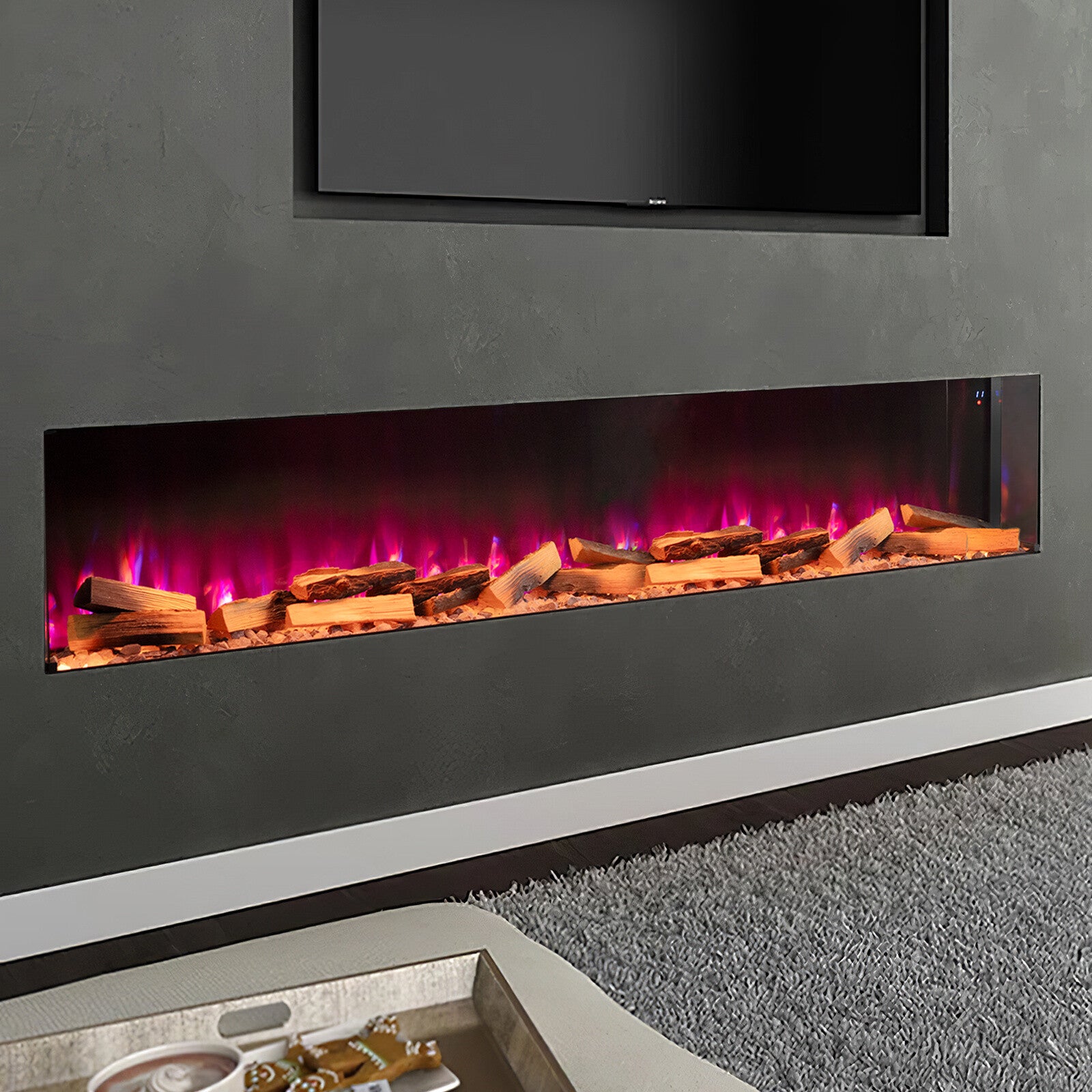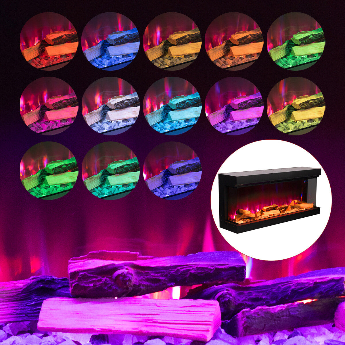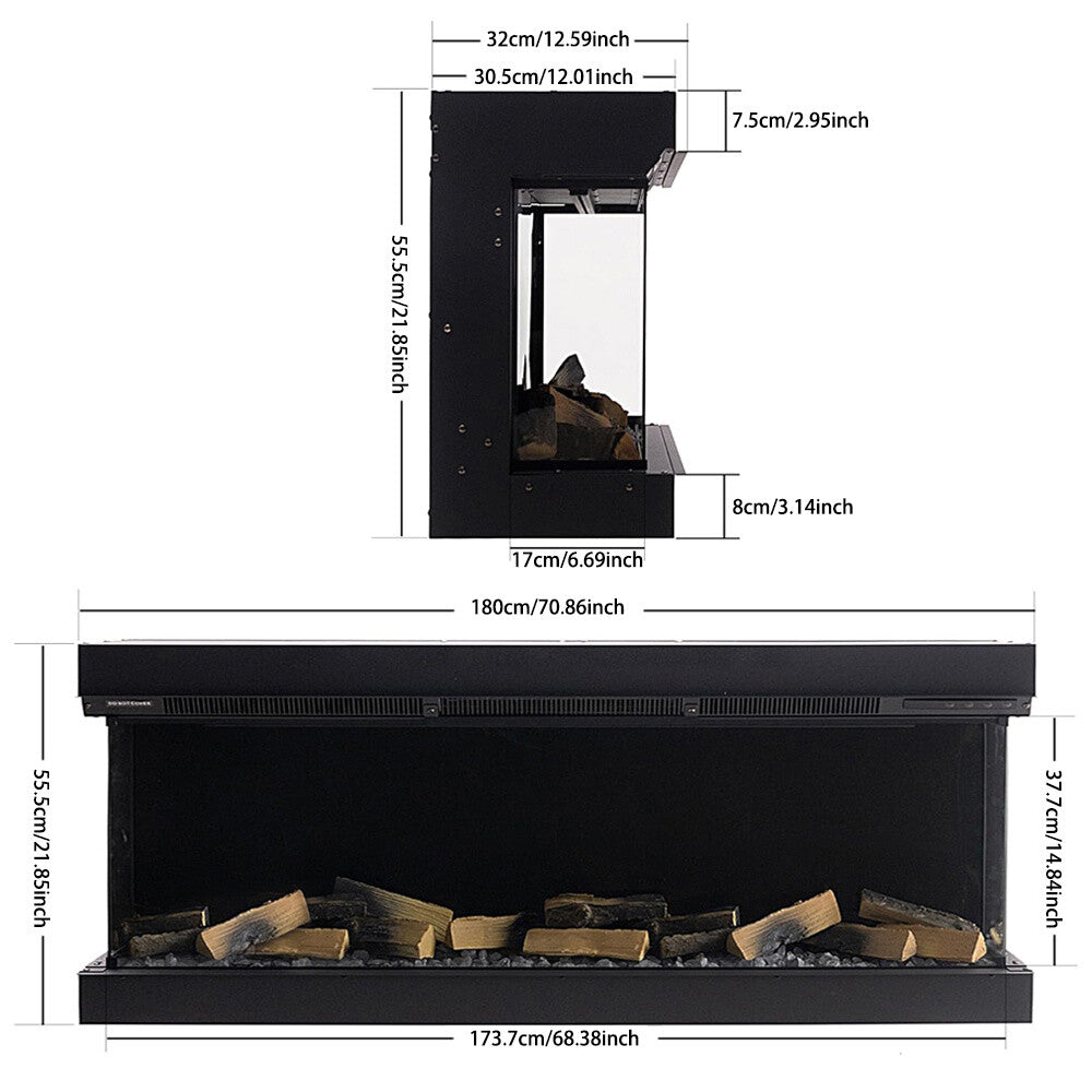 70in Electric Fireplace Panoramic Media Wood 12 Flame Standing Insert LED Stove