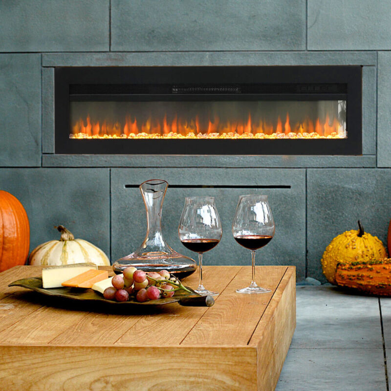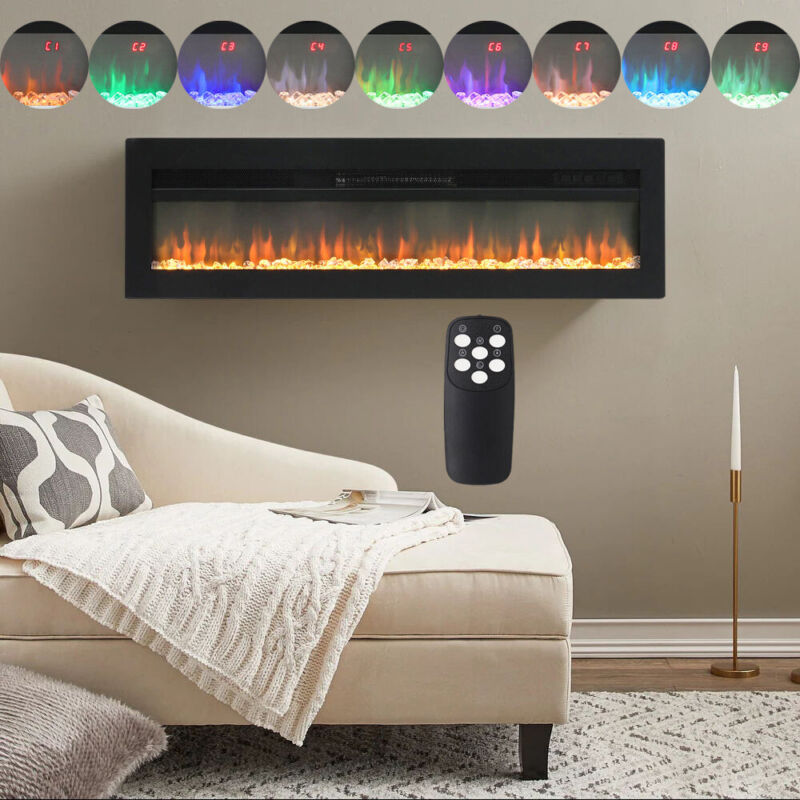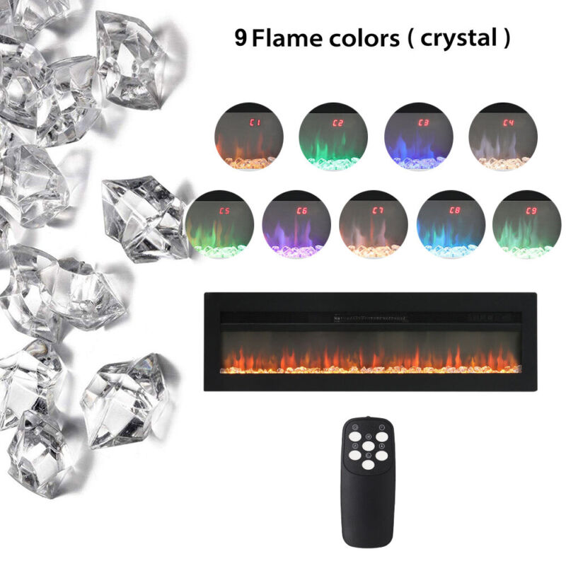 Adjustable Brightness, Adjustable Flame Colors, Adjustable Thermostat, LED Flames, On/Off Switch, Remote Control, Crystal Effect Fire Inlcuded, Wall Mounted, Inset / Freestanding