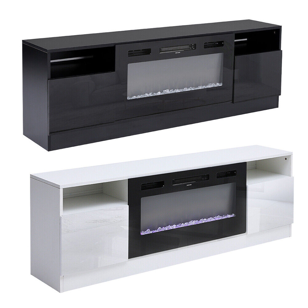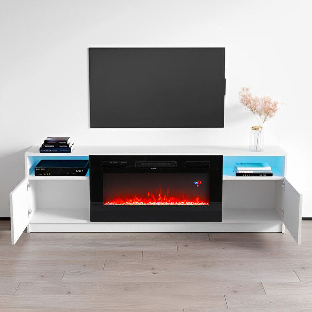70inch RTV Stand Cabinet 12 Colour LED Lights w/32" Electric Fireplace Furniture