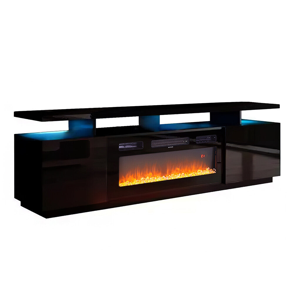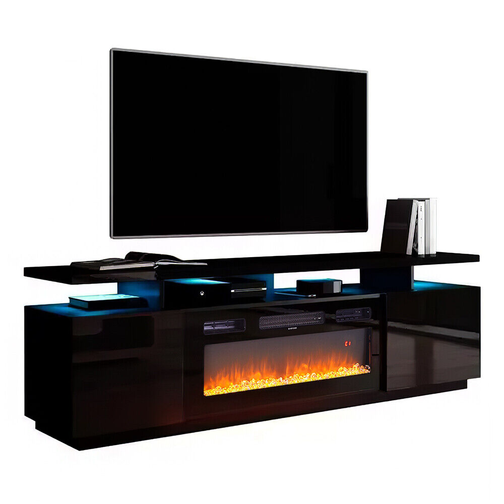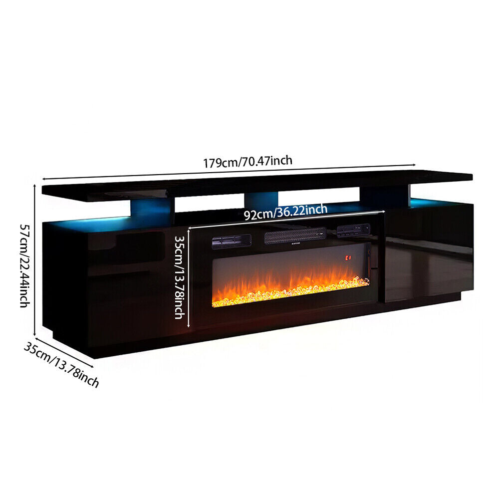 70inch TV Stand Cabinet w/ 36"Electric Fireplace & 12 LED Lights Media Furniture