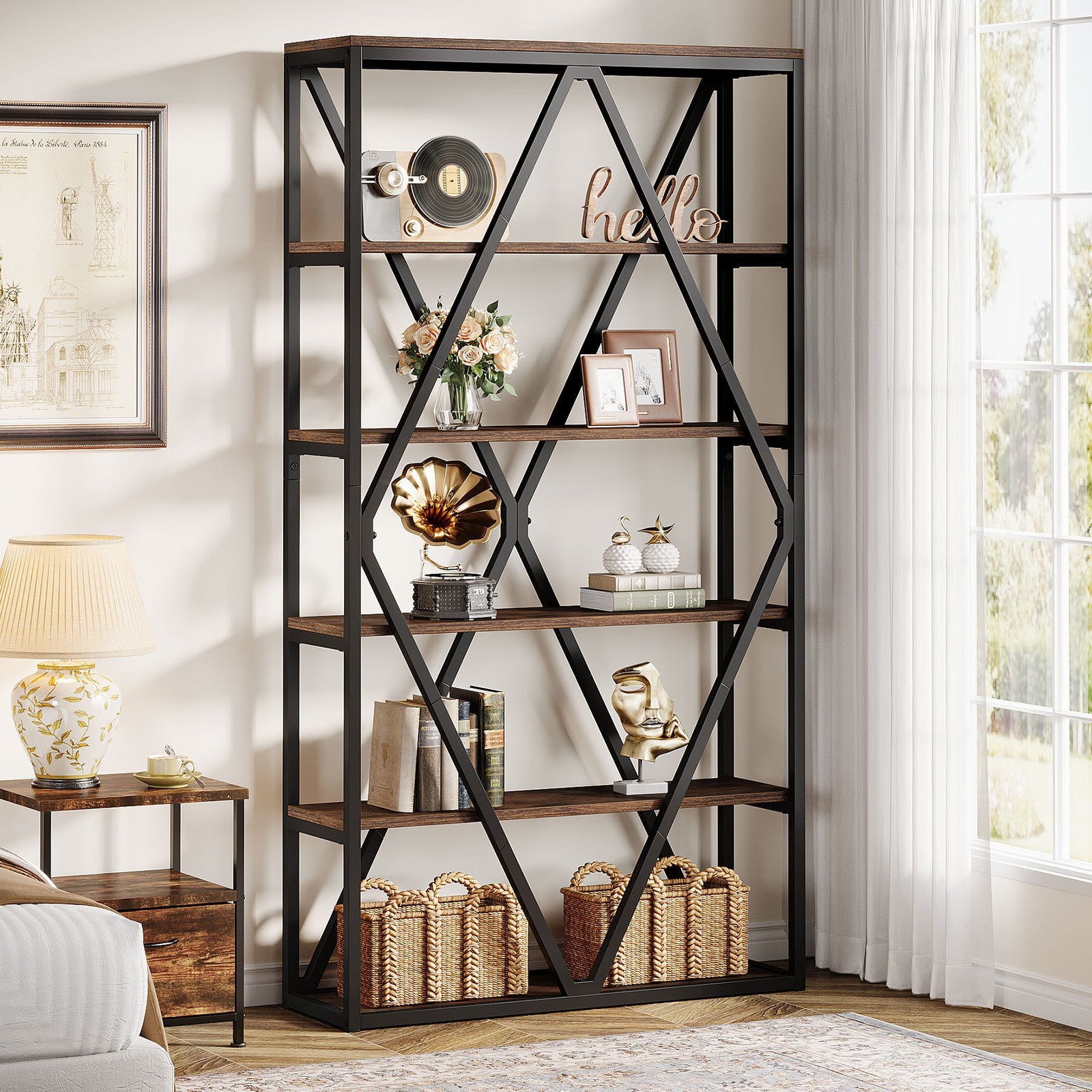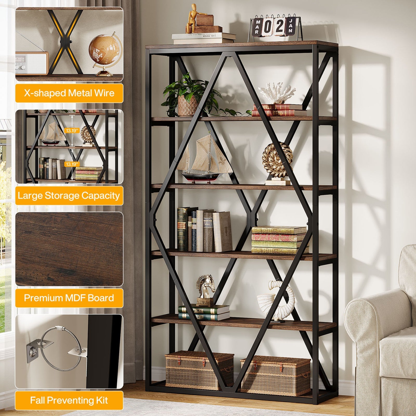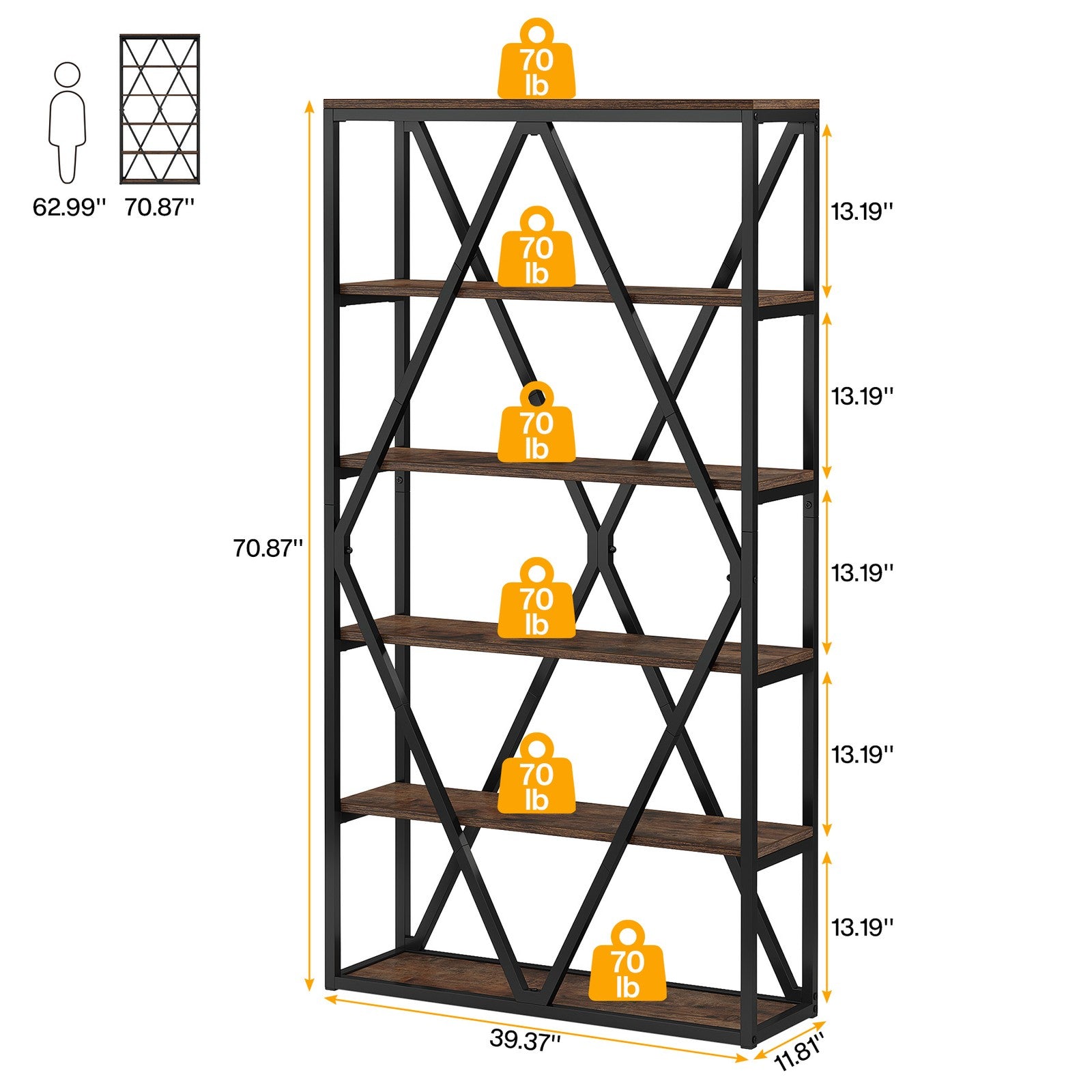 71'' Tall Industrial Bookshelf, 6-Tier Freestanding Open Bookcase w/ Metal Frame