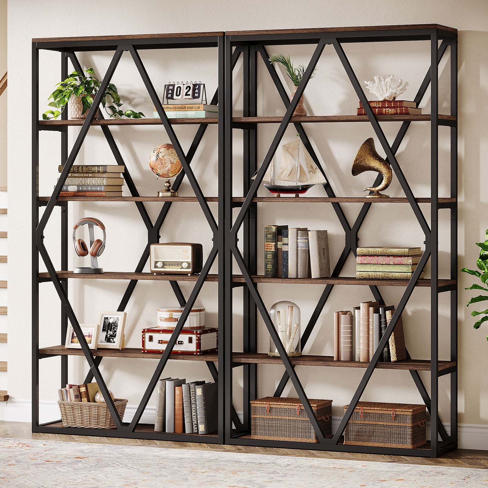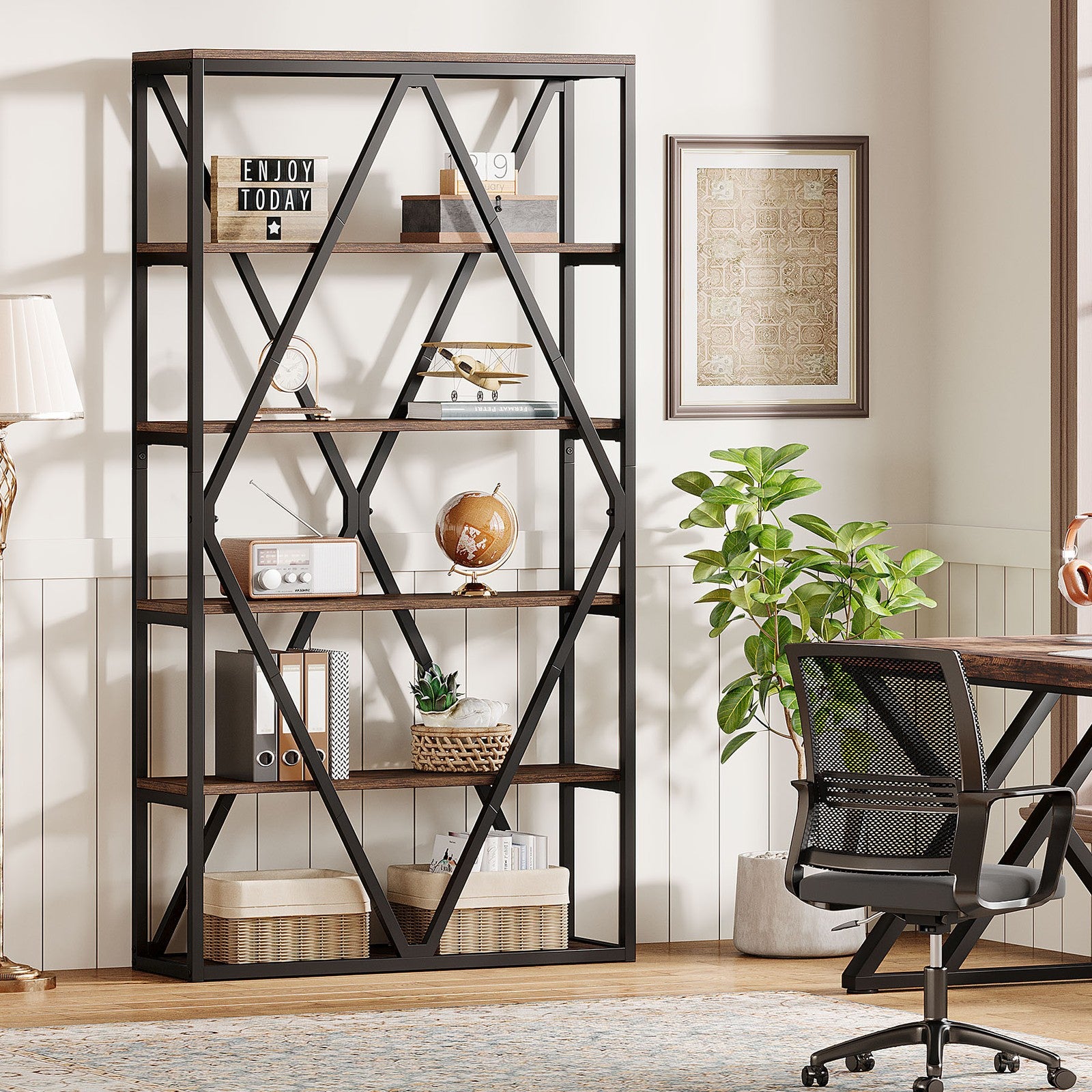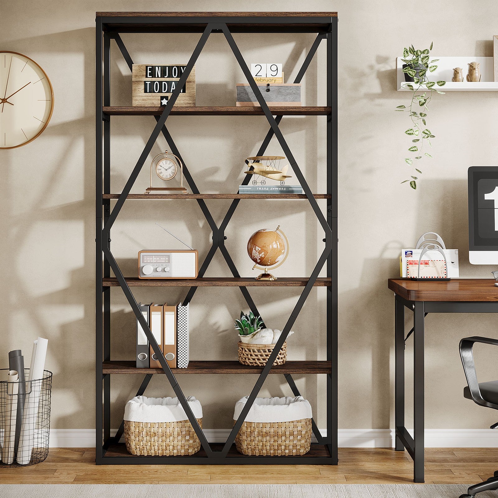 71'' Tall Industrial Bookshelf, 6-Tier Freestanding Open Bookcase w/ Metal Frame