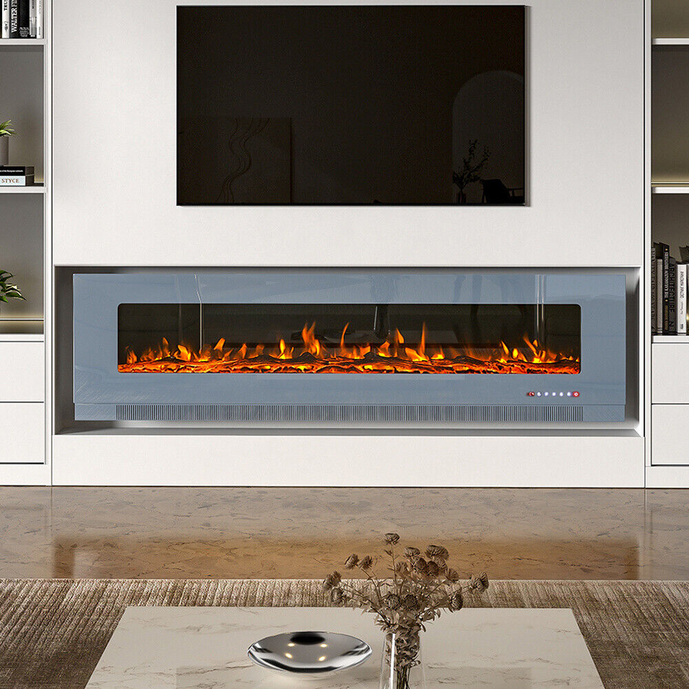 72 In Electric Heater LED Fireplace Wall Mounted Inset Standing Media Log Fire