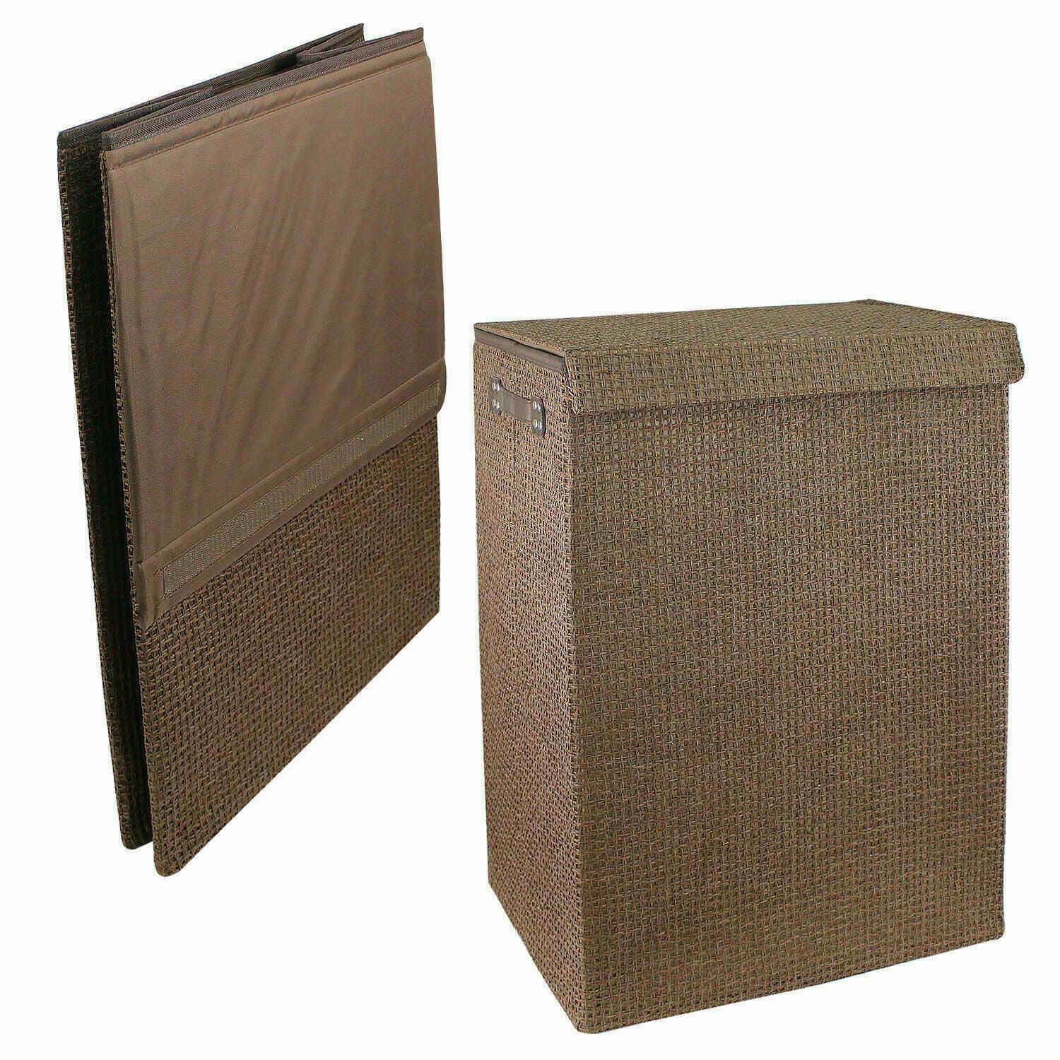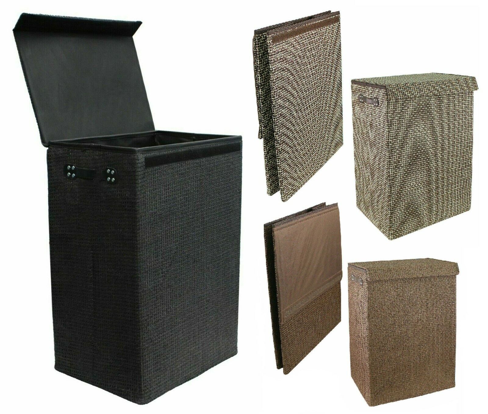 72L Rattan Foldable Laundry Basket Hamper Washing Clothes Storage Lid Box Bin
