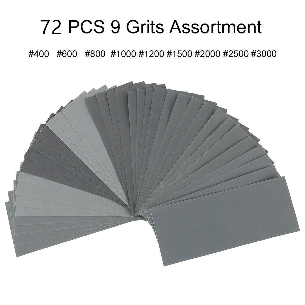 72Pcs/Set Wet And Dry Sandpaper Mixed Assorted Grit 400 600 800 1000 1200 1500