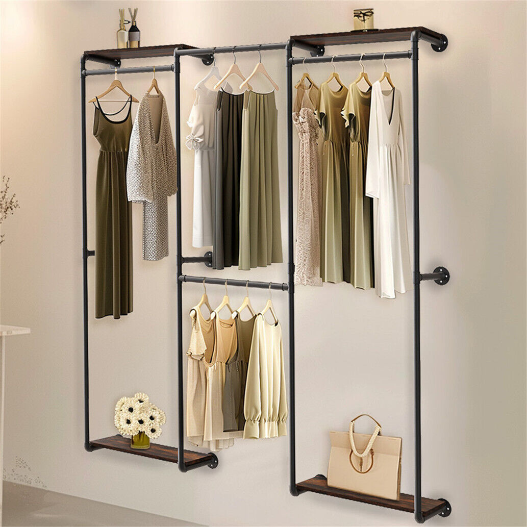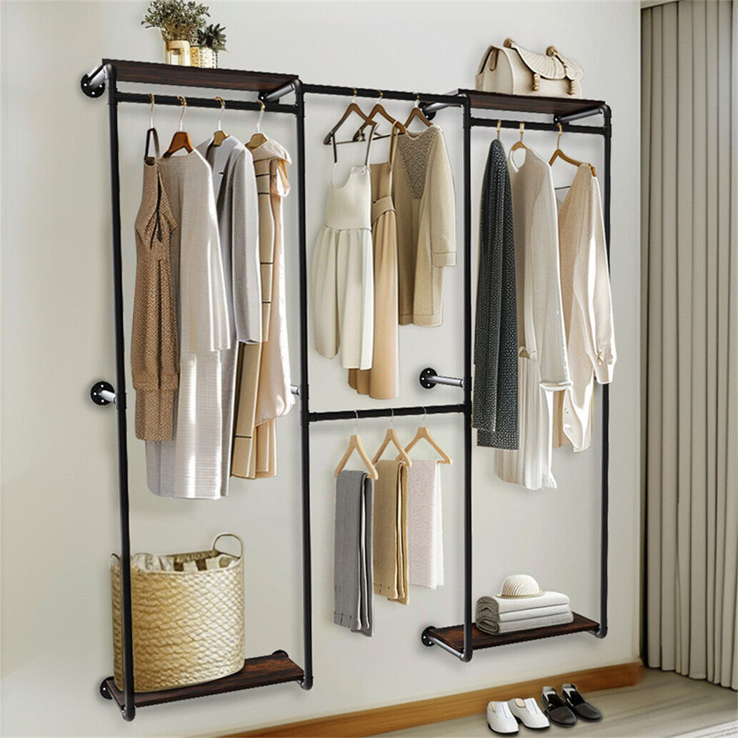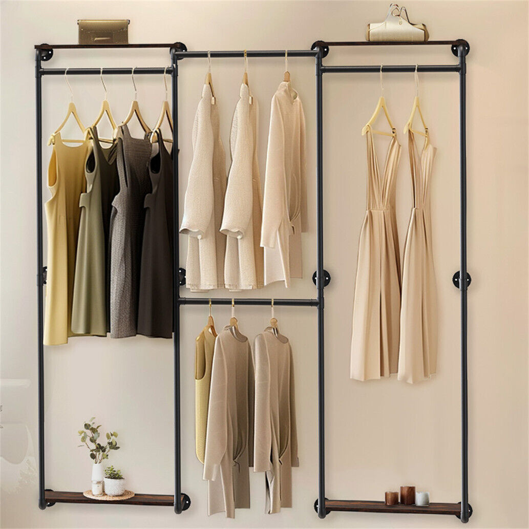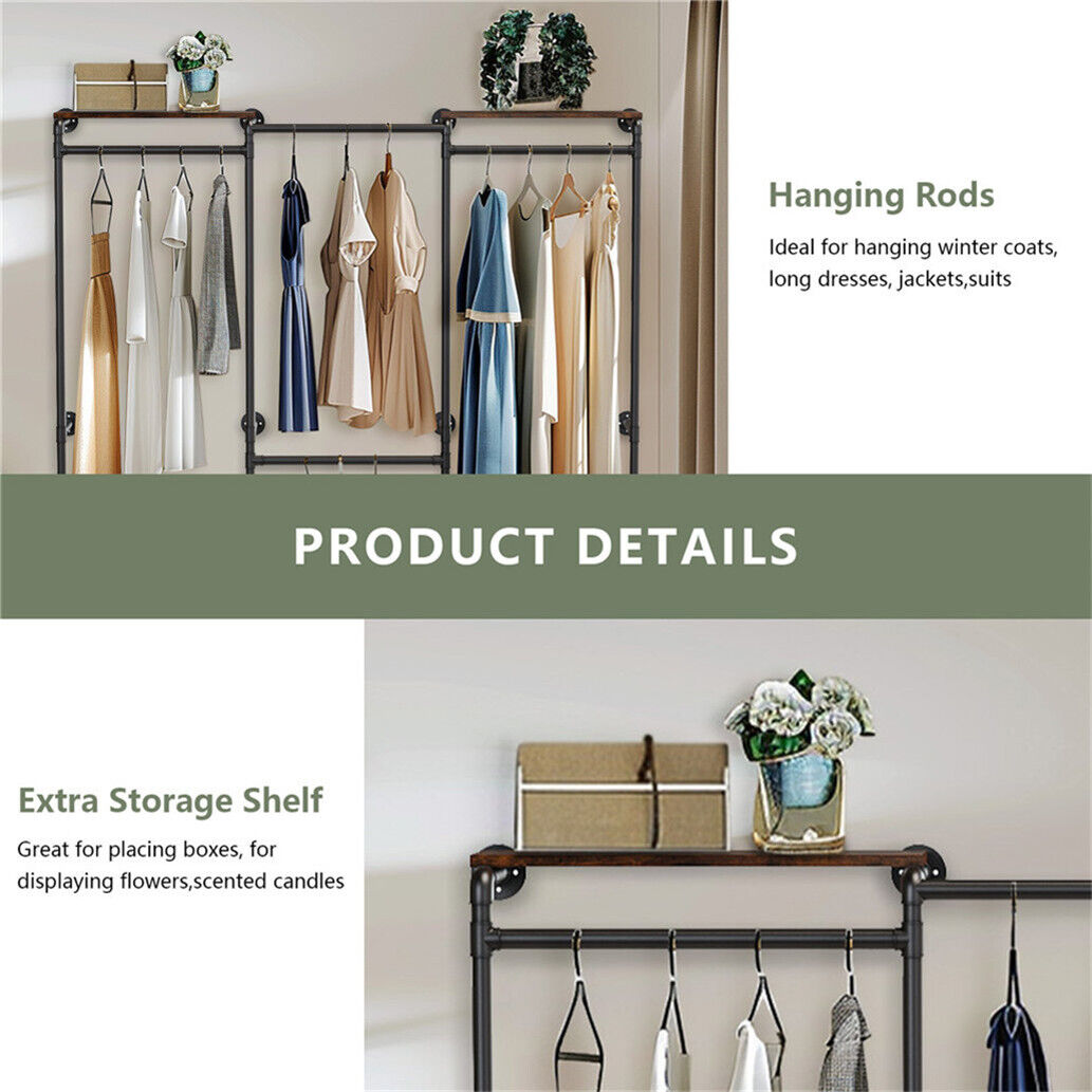 73" Industrial Pipe Clothing Rack with Shelves Hanging Rods Display Garment Rail