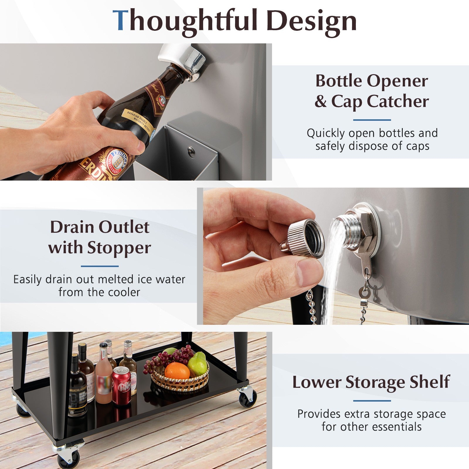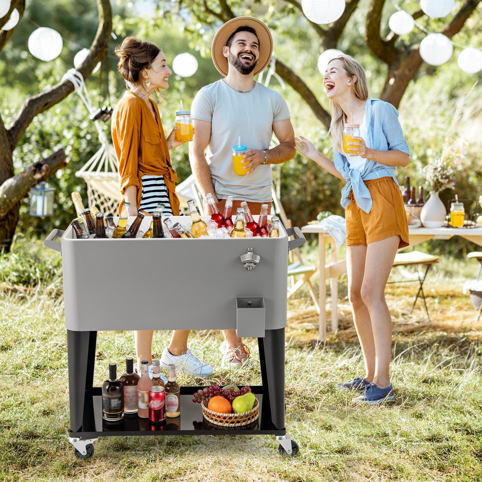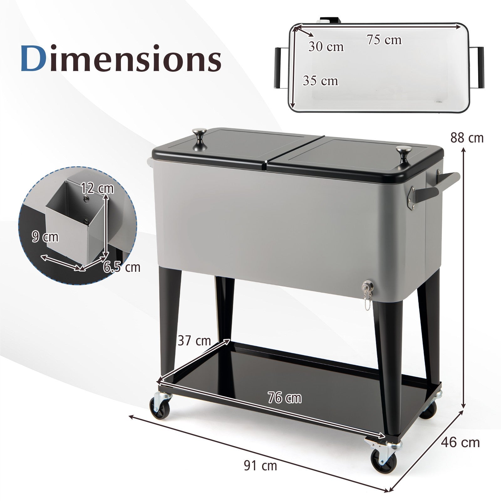 75 L Rolling Ice Chest Portable Patio Cooler Cooler Cart Sliver