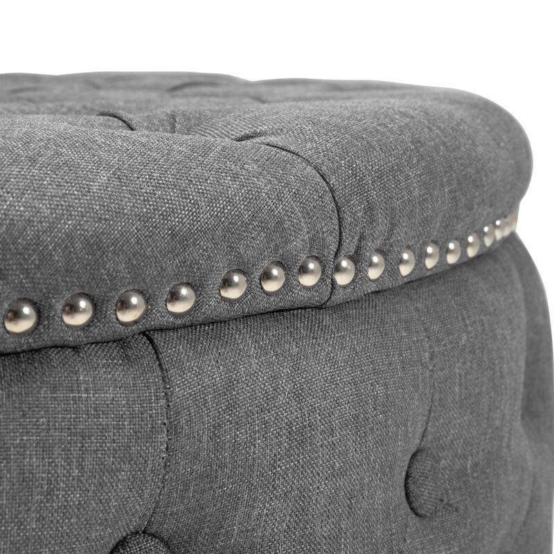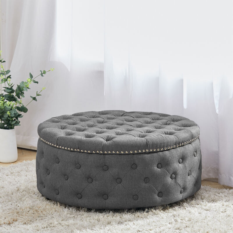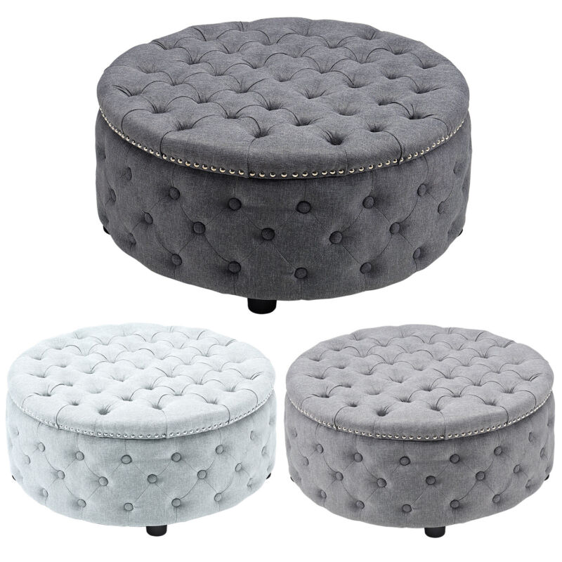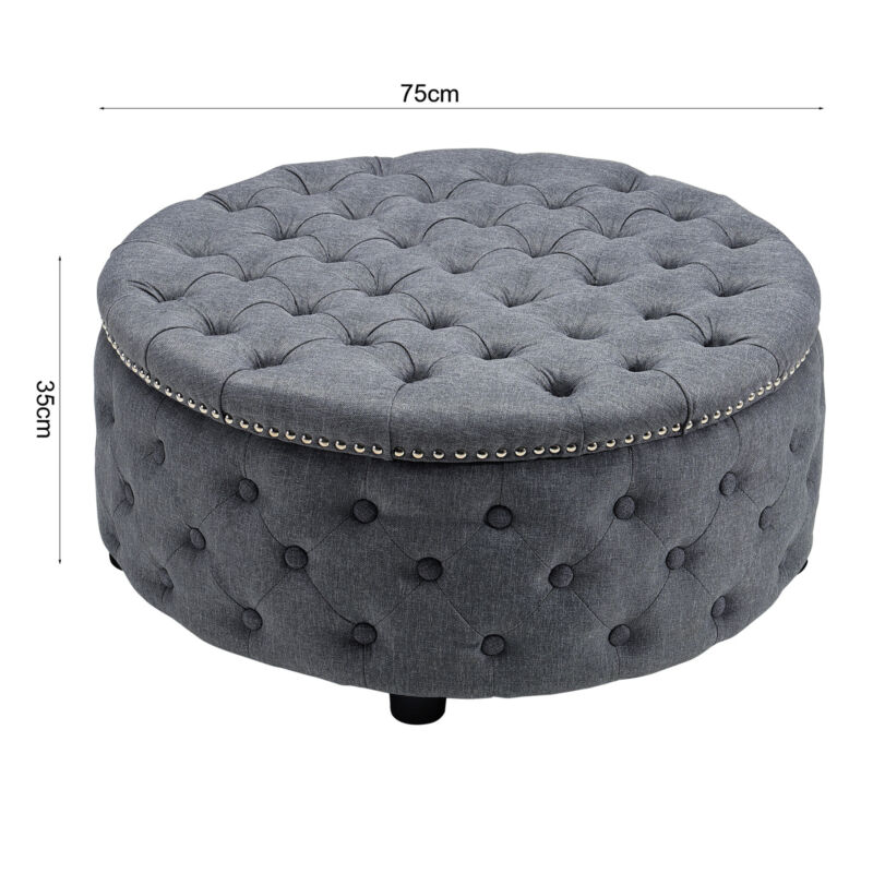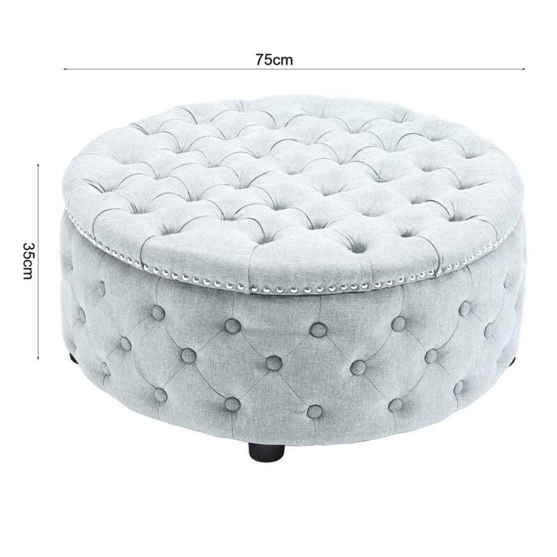 75cm Large Round Fabric Linen Chesterfield Footstool Pouffe Ottoman Coffee Table