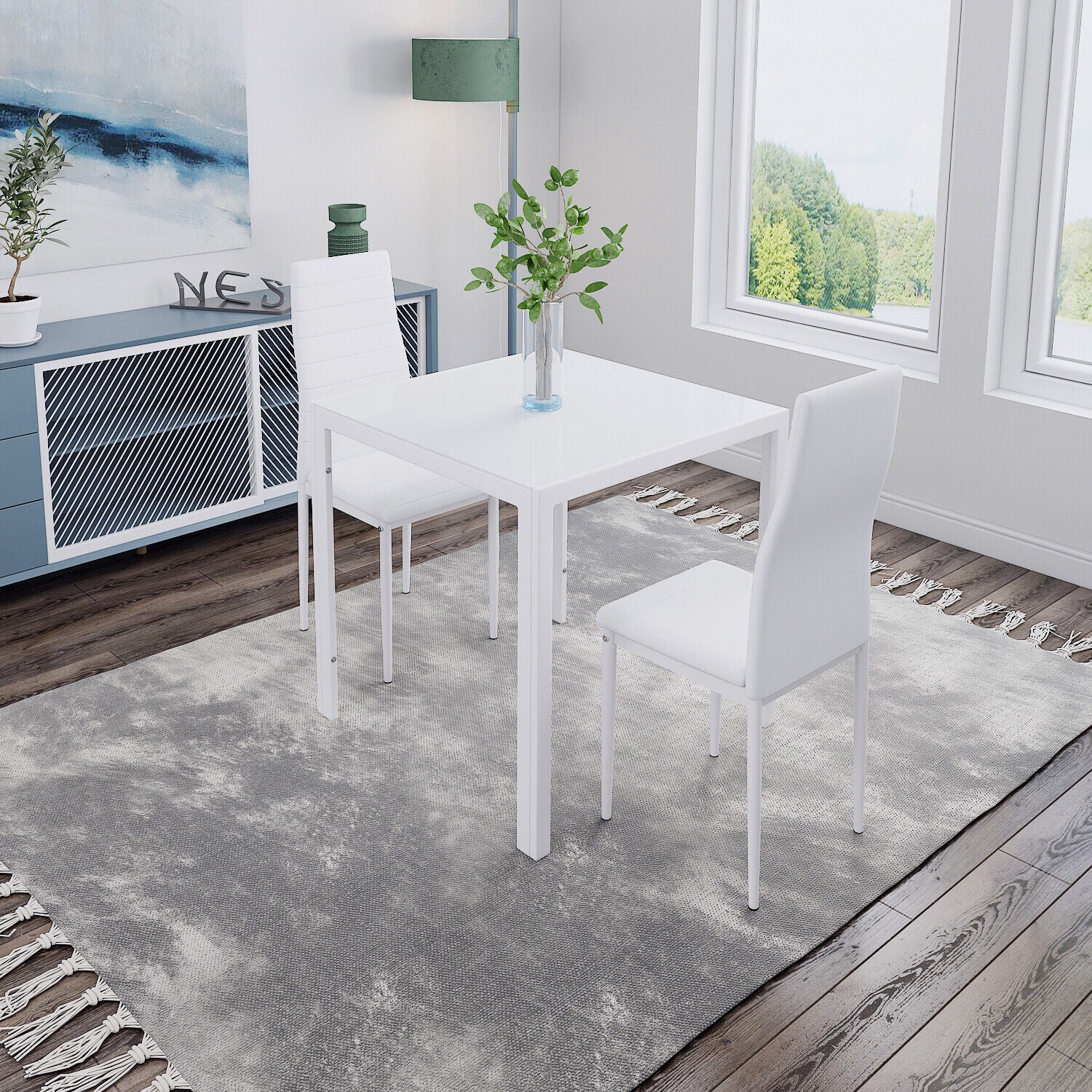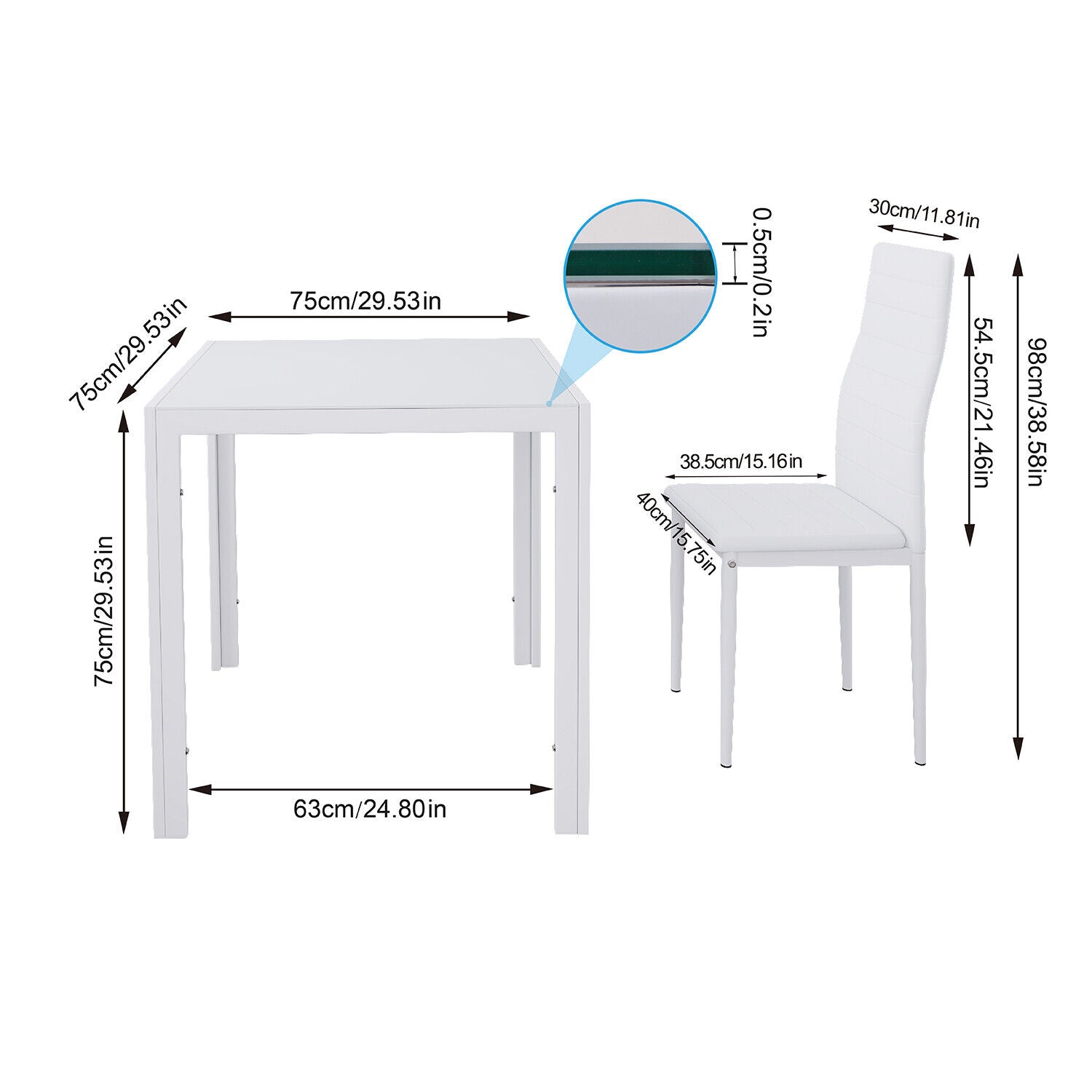 75cm Square Glass Dining Table Modern White Kitchen Table 2-4 Seater Dining Room