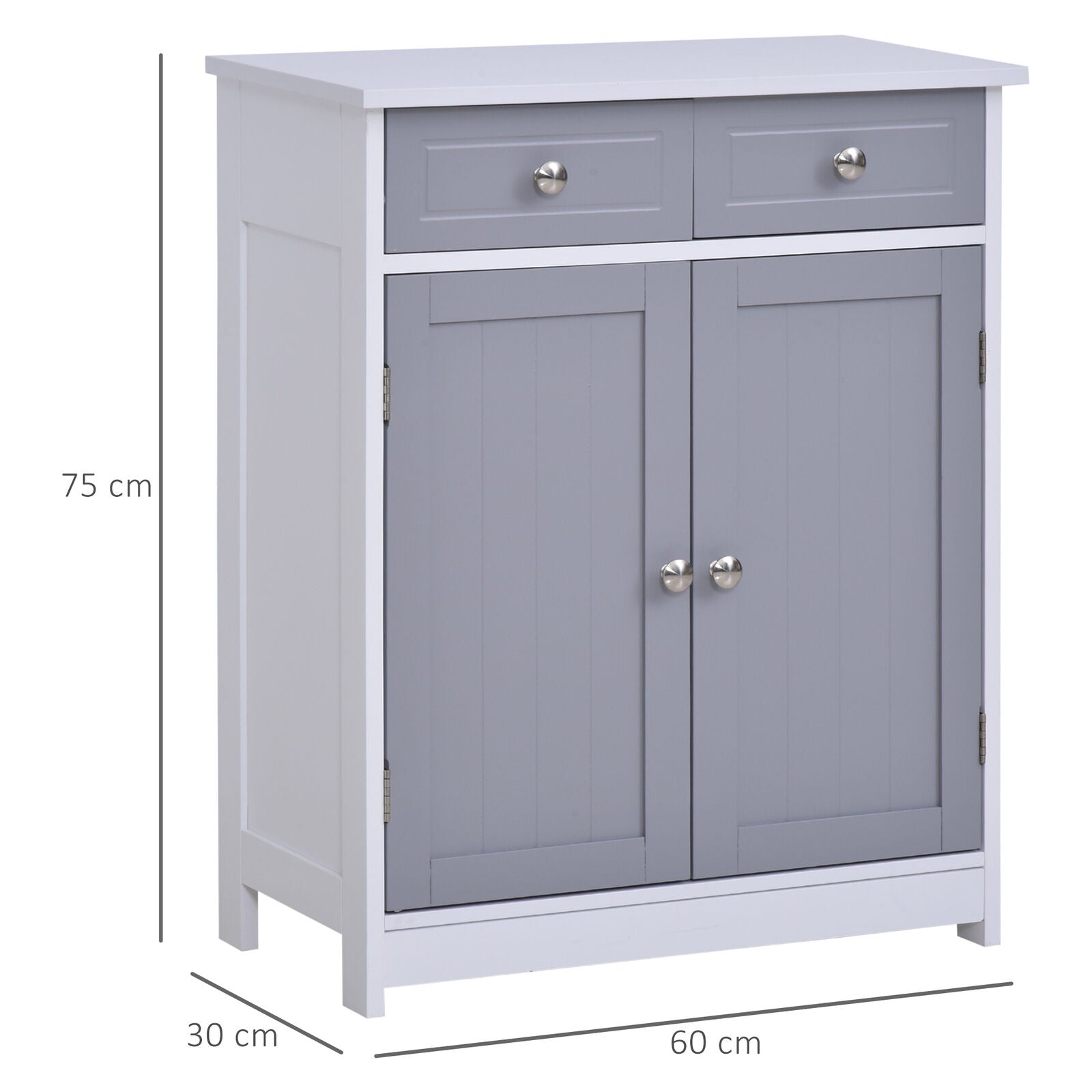 75x60cm Freestanding Bathroom Storage Cabinet Unit w/ 2 Drawers Cupboard