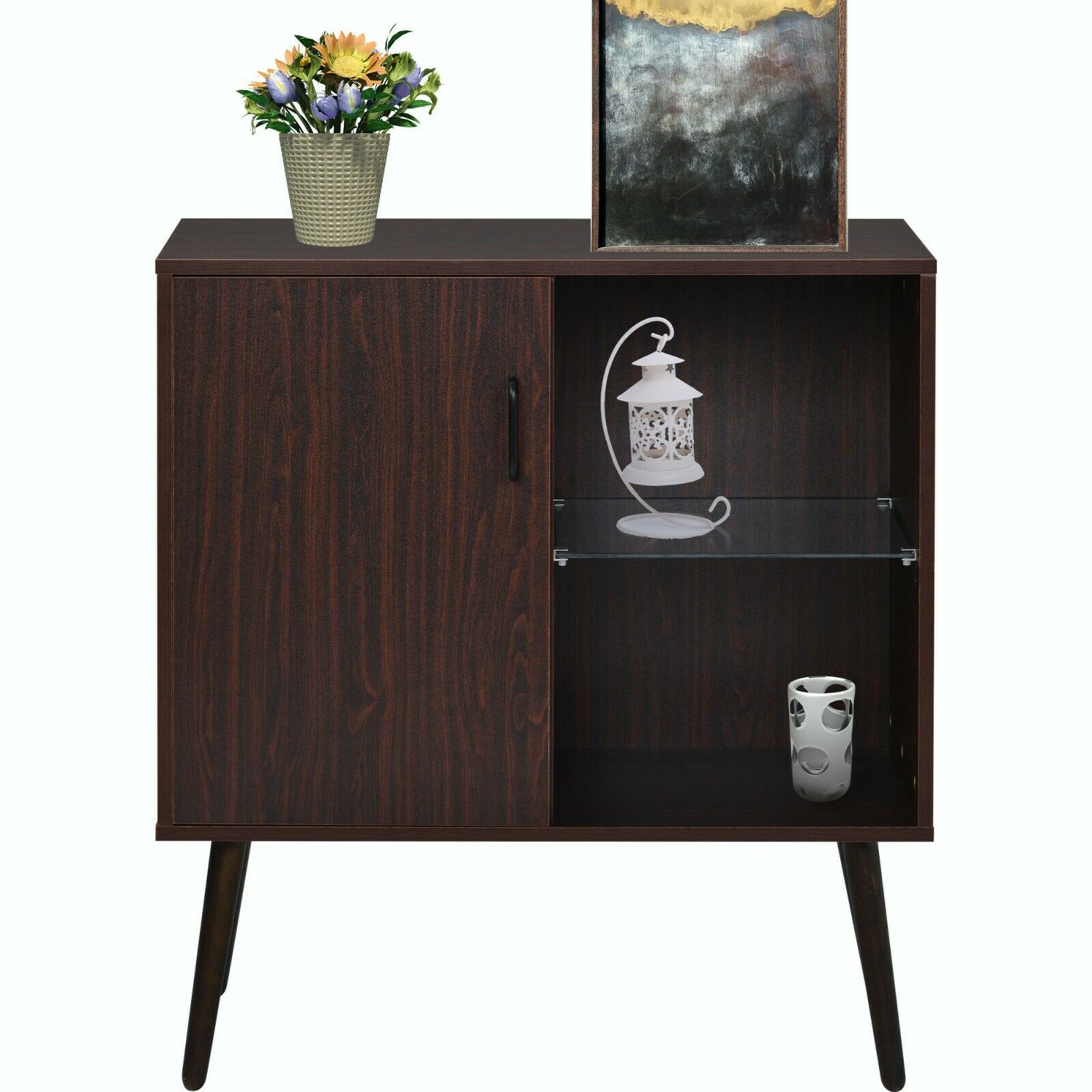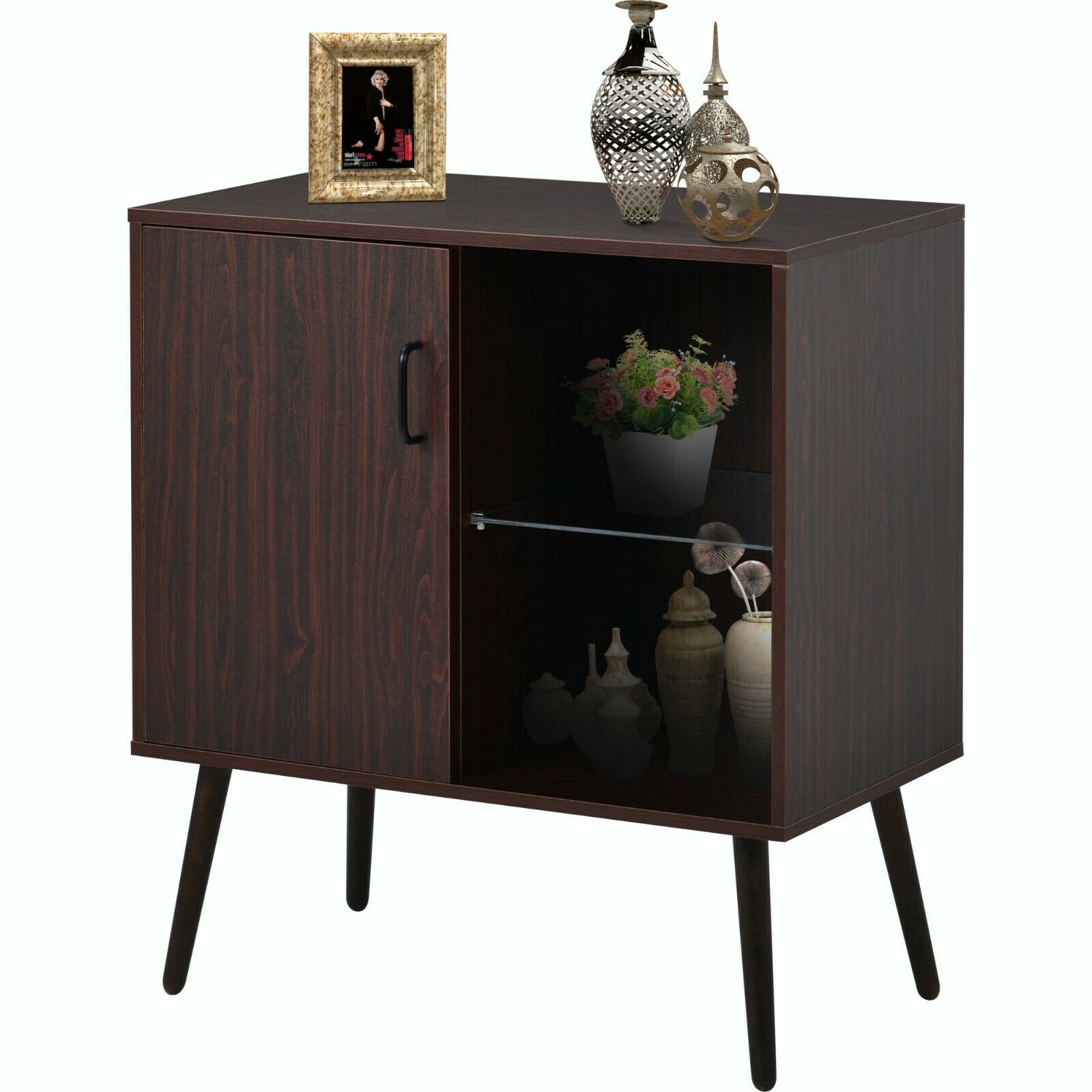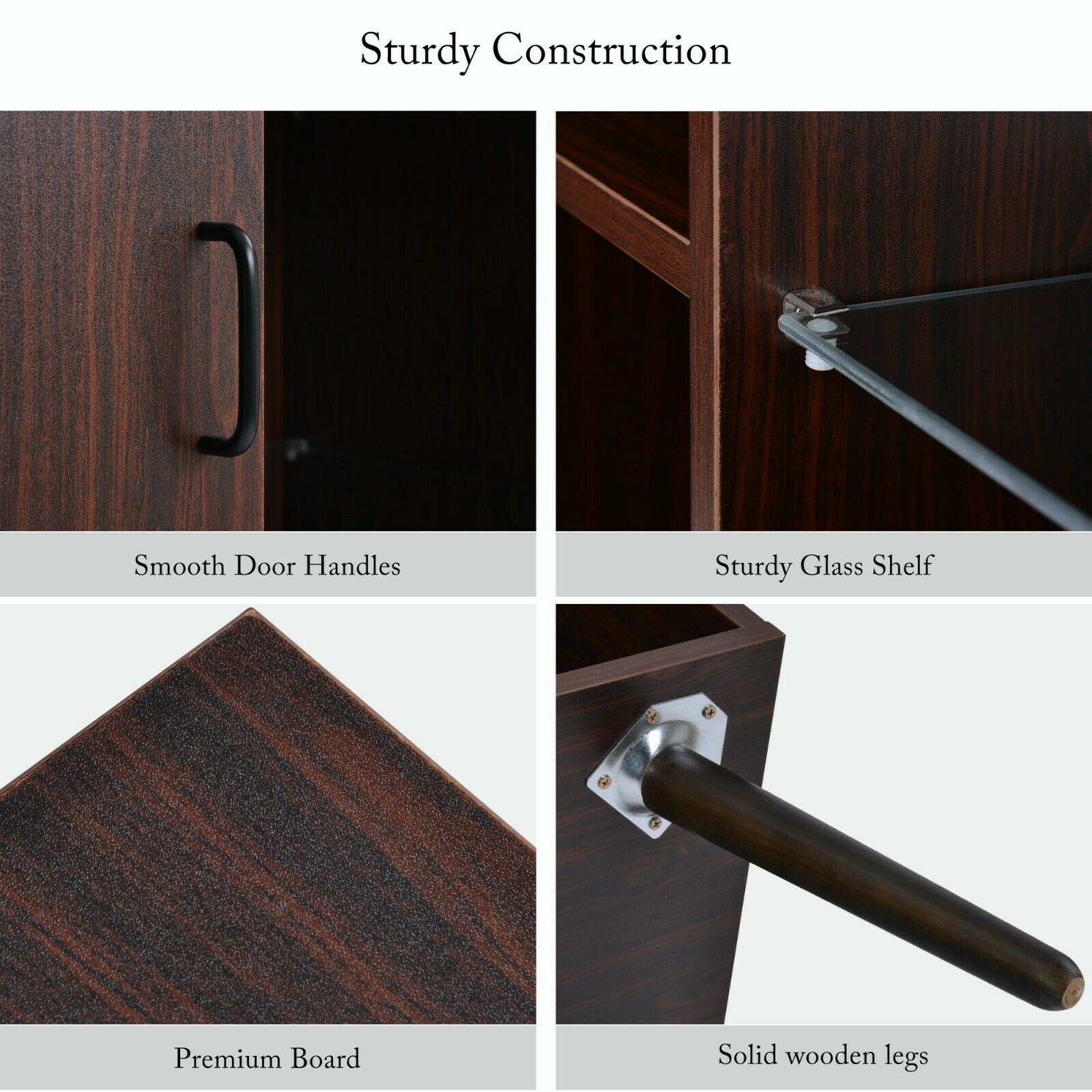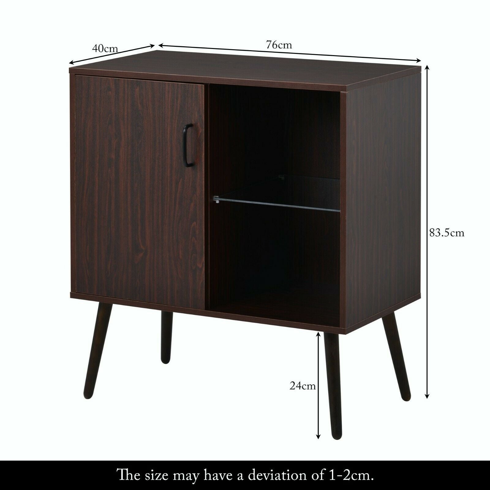 76*40*83.5cm Retro Storage Cabinet Sideboard Cupboard W/ Glass and Metal Handle