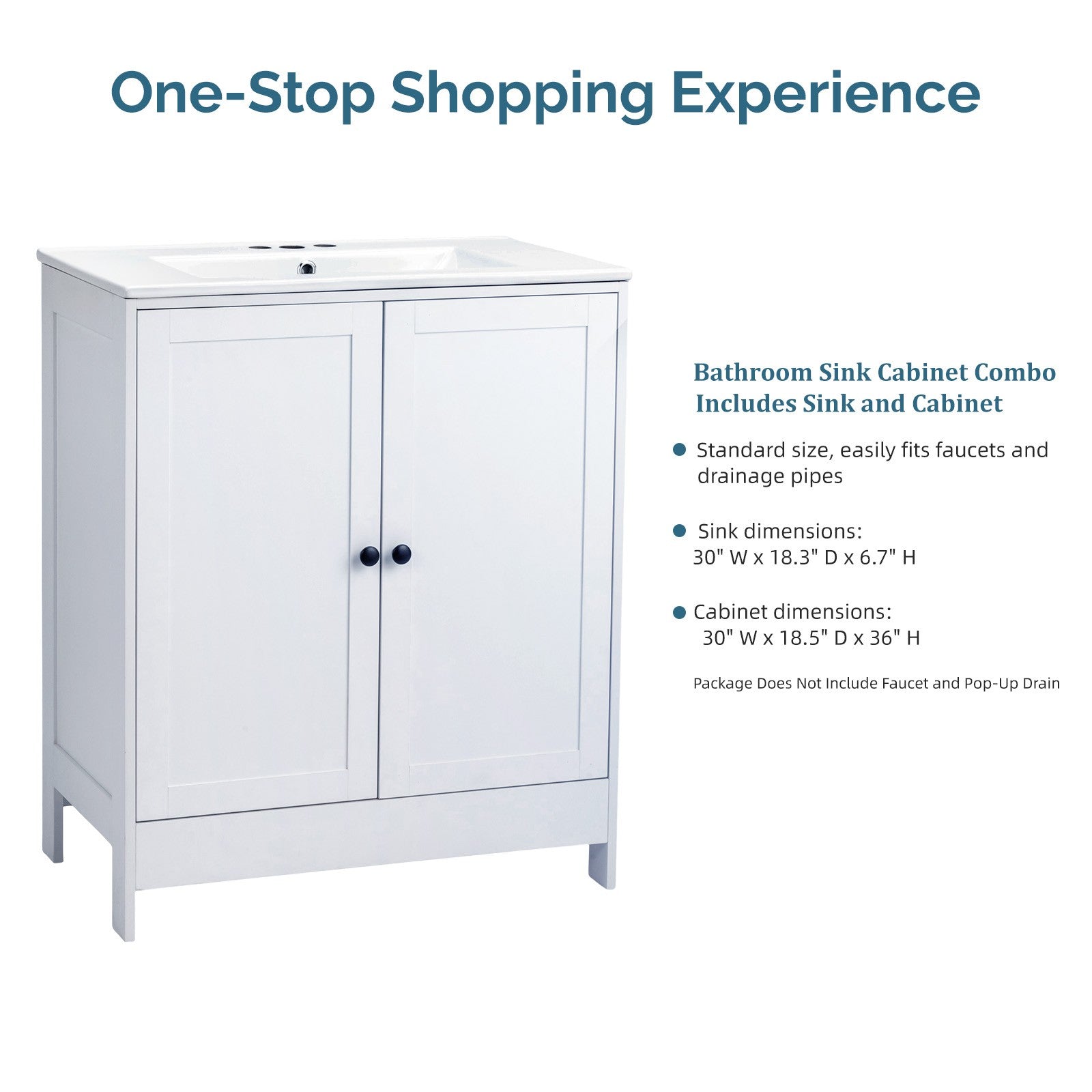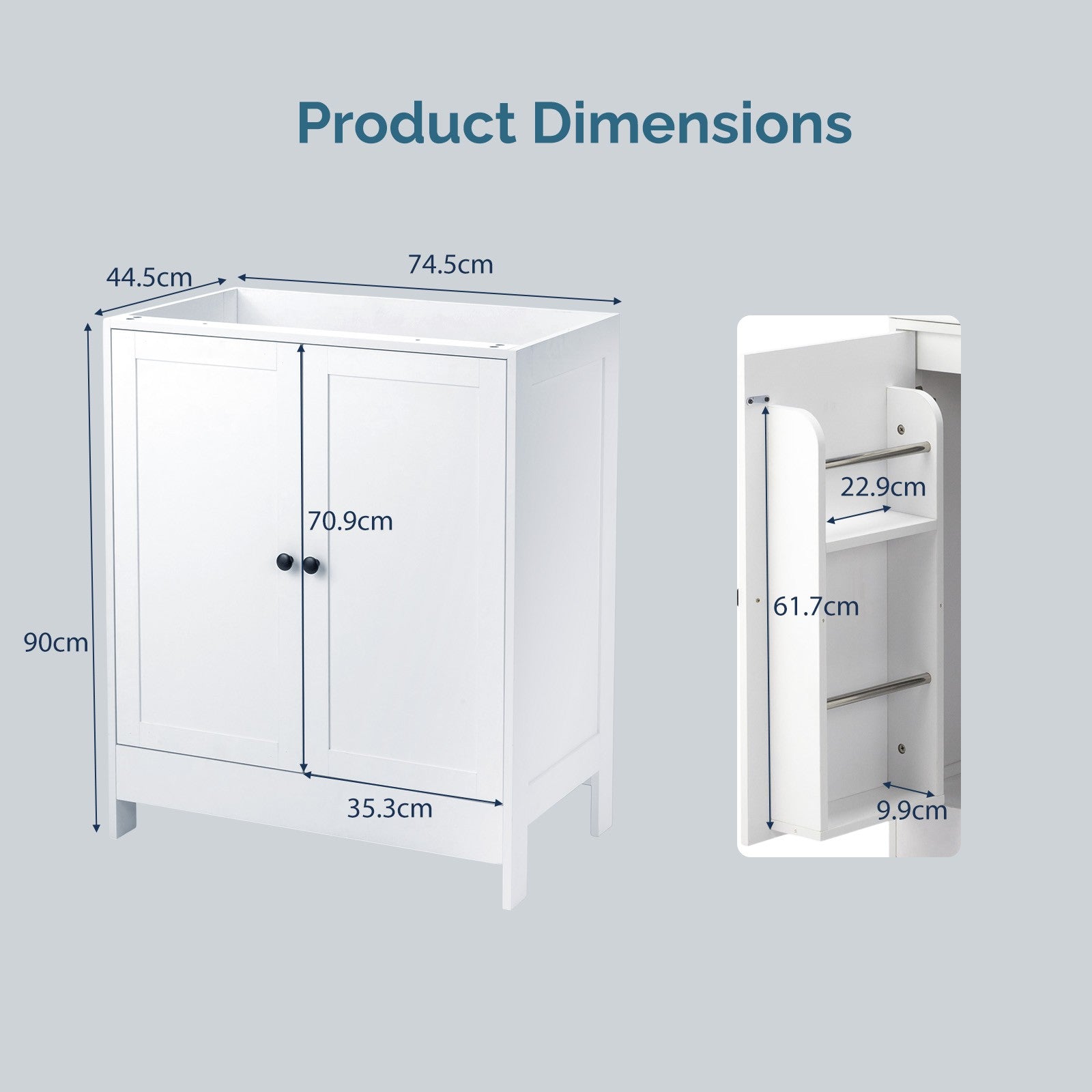 760mm Freestanding Vanity Unit Basin Sink Bathroom Storage Cabinet White UK