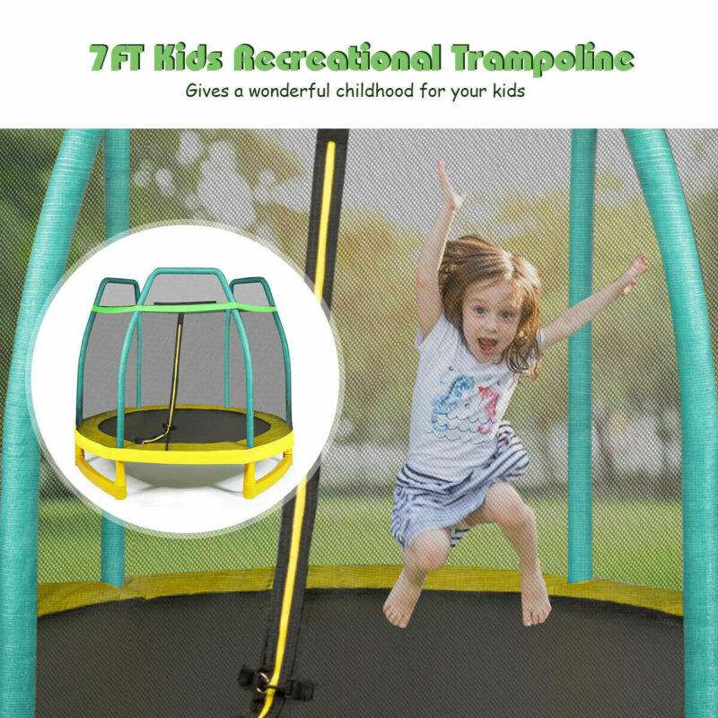 7FT Kids Trampoline Safety Jumper Rebounder Enclosure Net Indoor Outdoor Play