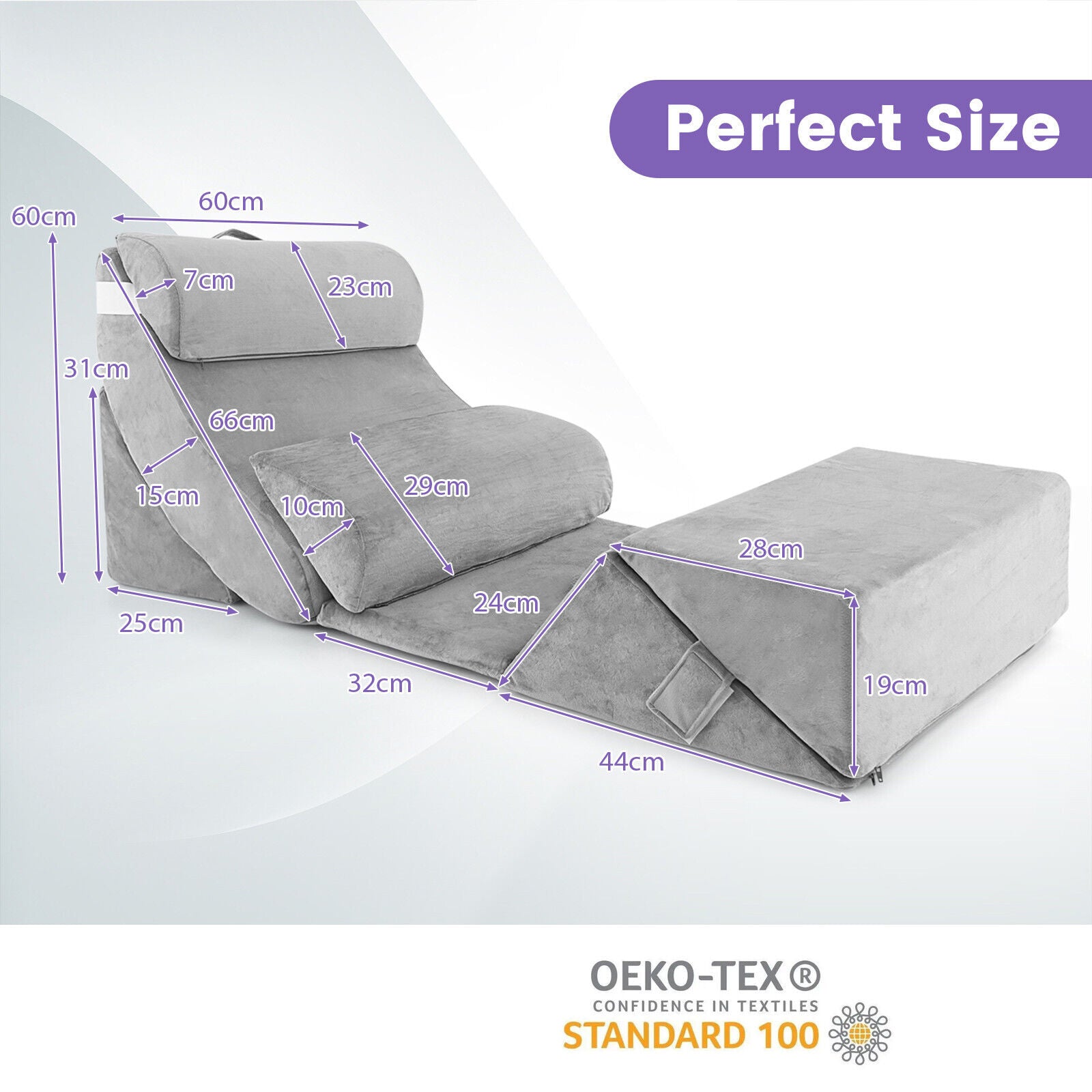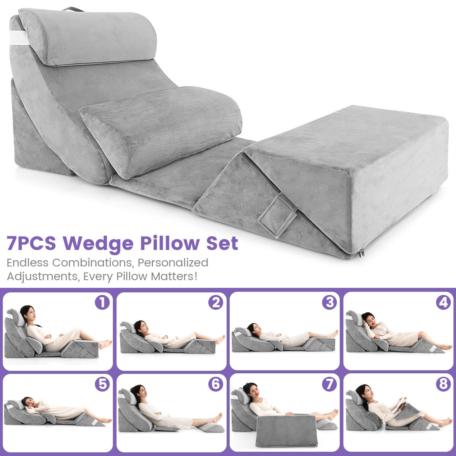 7PCS Adjustable Support Pillow Set Sit-up Pillow Memory Foam Bed Wedge Pillows