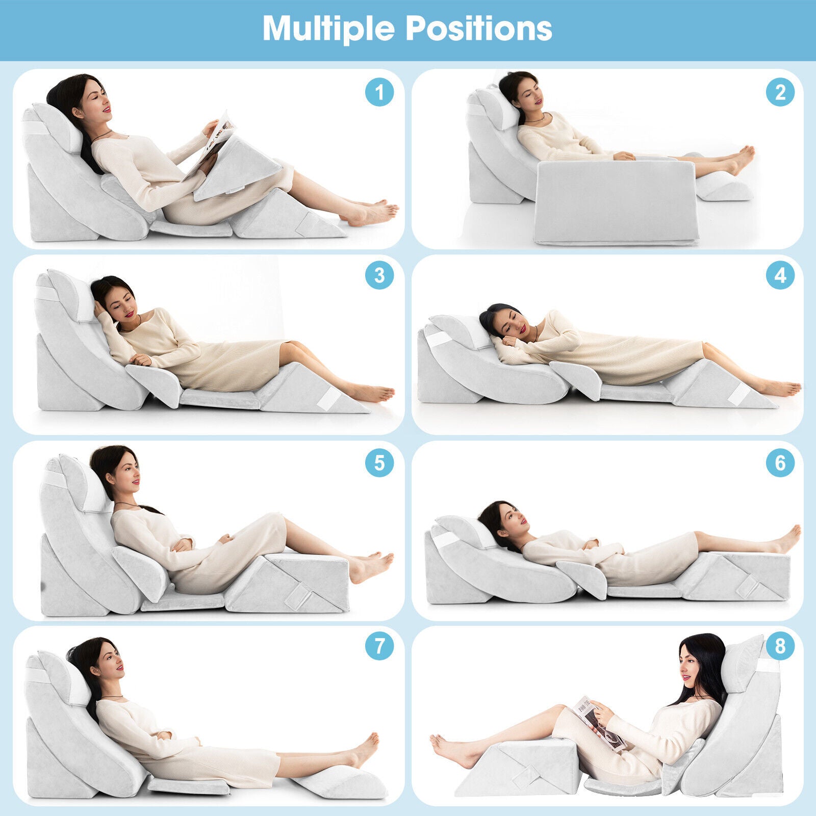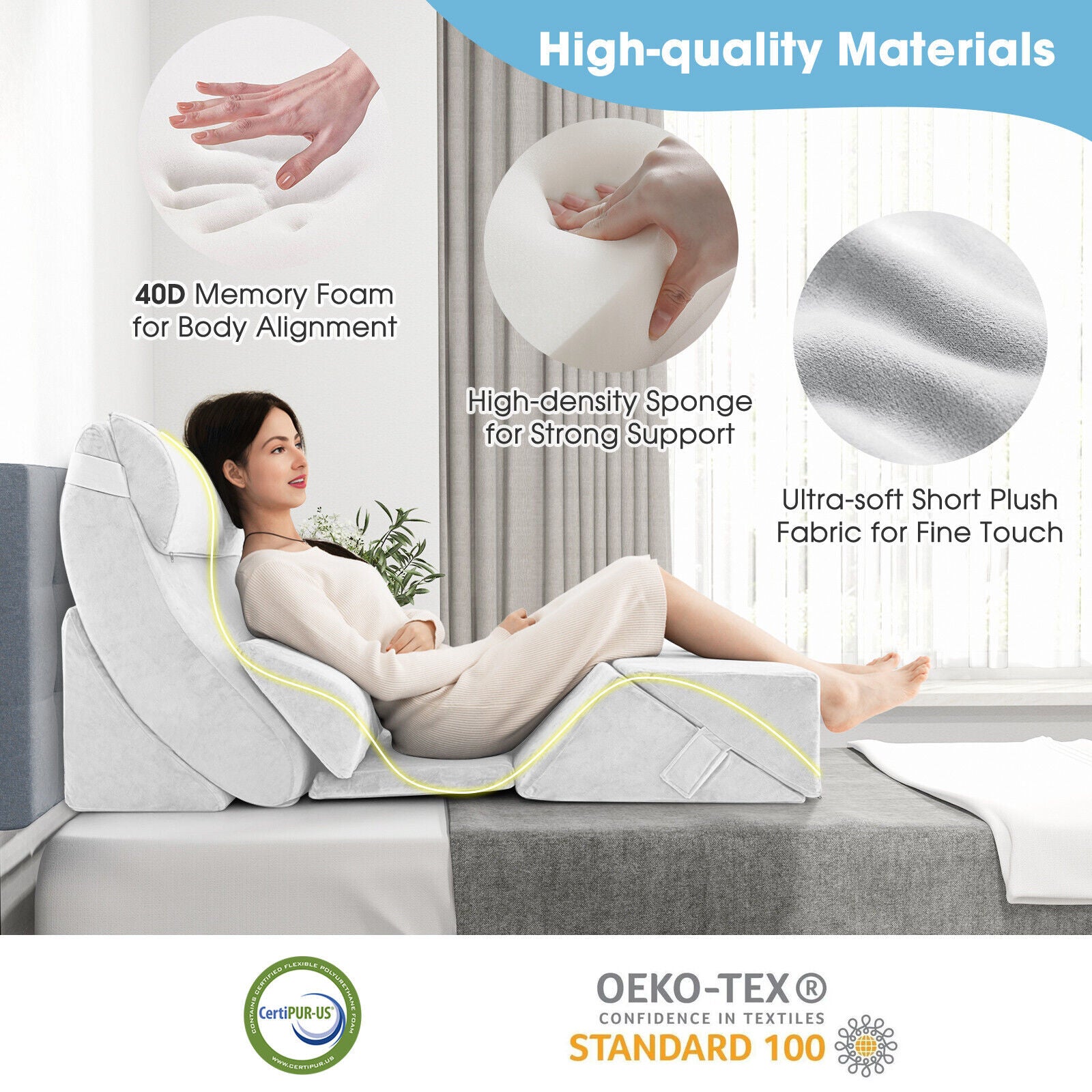 7PCS Adjustable Support Pillow Set Sit-up Pillow Memory Foam Bed Wedge Pillows