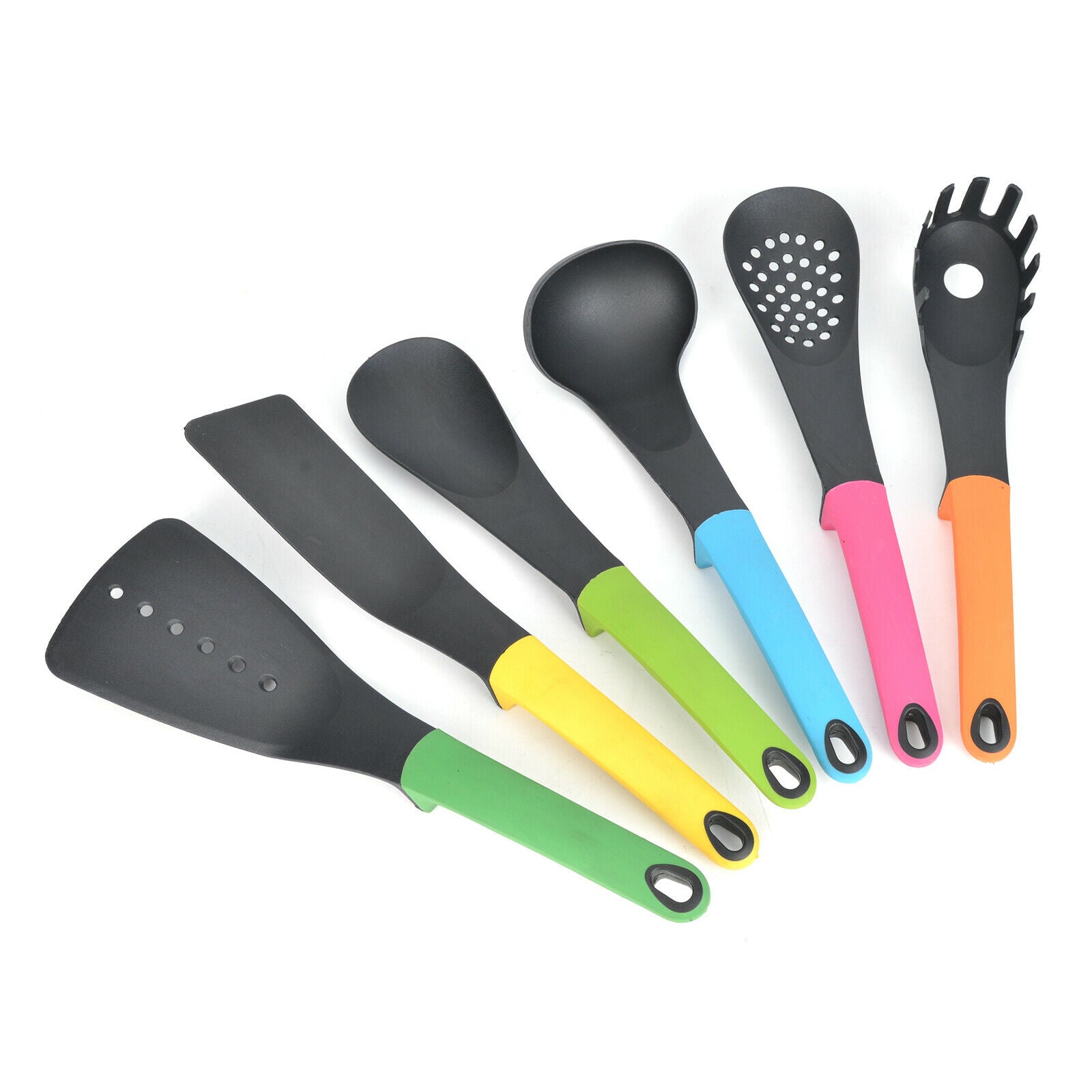 7Pcs Nylon Multi-Coloured Utensil Set With Stand UK Kitchen Essential