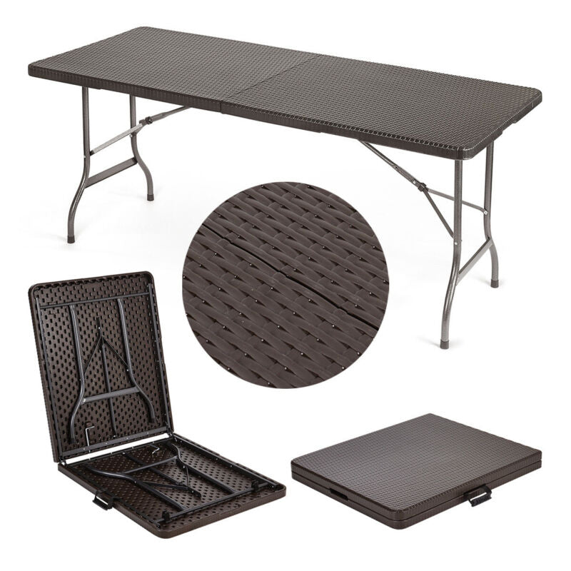 7Pcs Rattan Foldable Garden Outdoor Picnic Camping Table & 6 Chairs Set UK