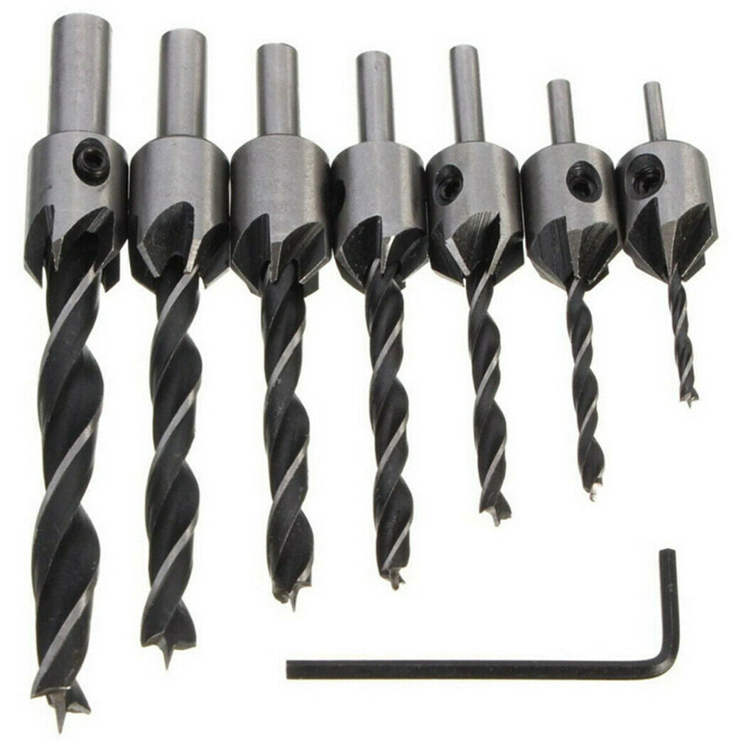 7X Drill Bit Countersink Set Carpentry Tool 90 degree Professional HSS Universal