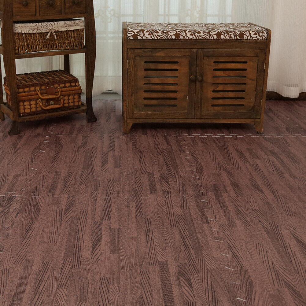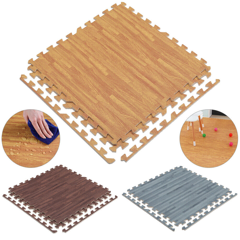 8/16/24pcs EVA Foam Floor Wood Effect Interlocking Gym Play Soft Tiles Mats UK