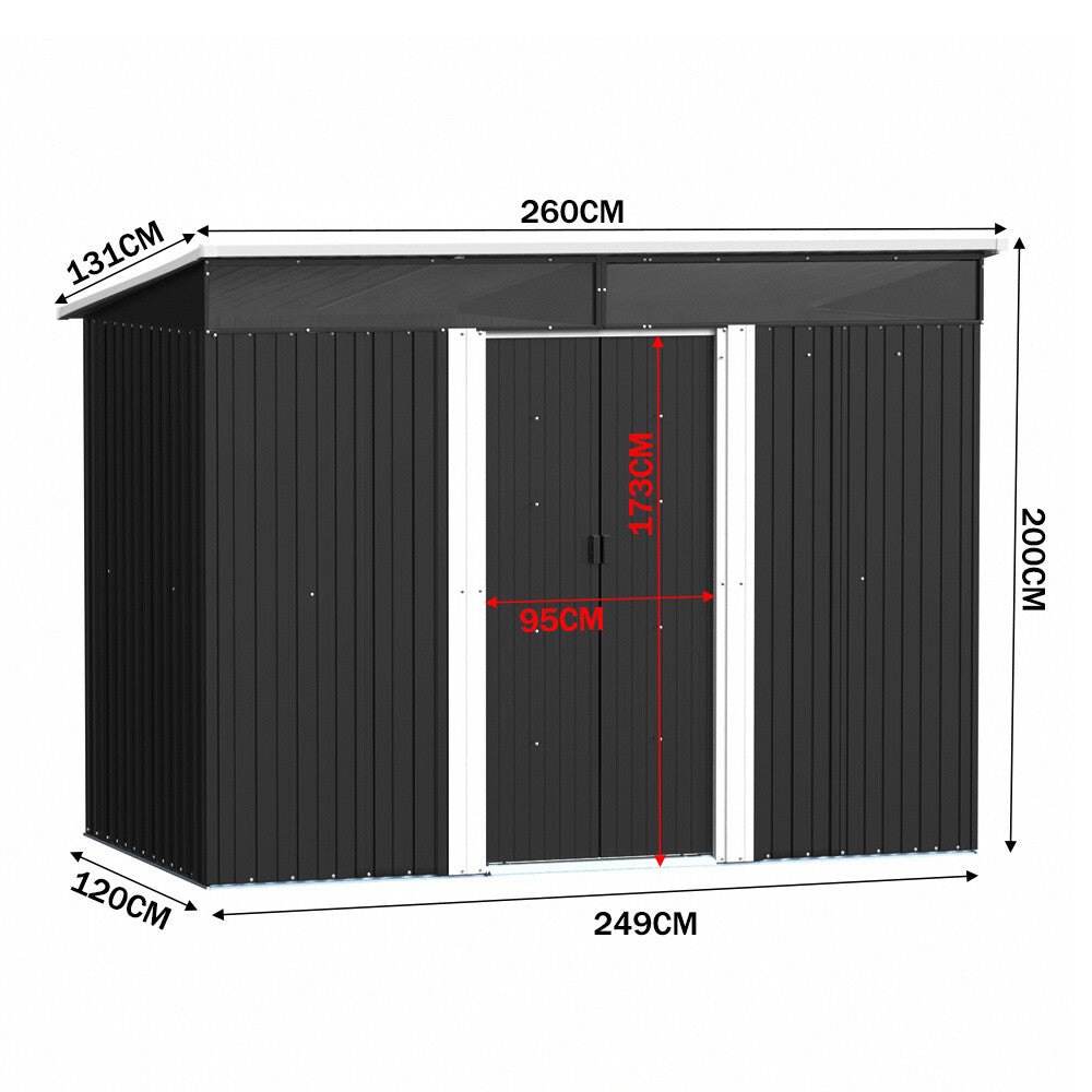 8.5x4ft Anthracite Metal Garden Shed Storage Pent Roof Small Shed Acrylic Window