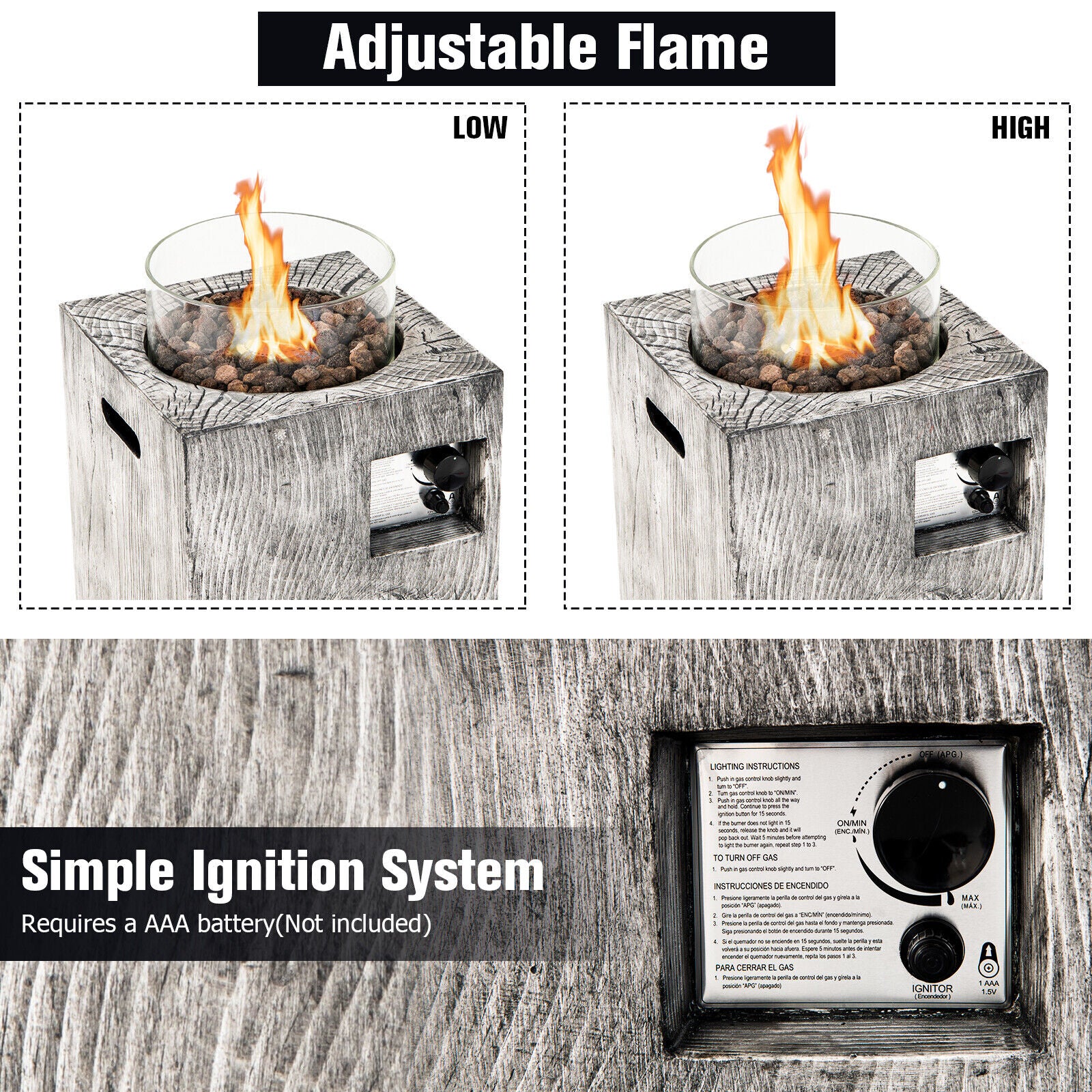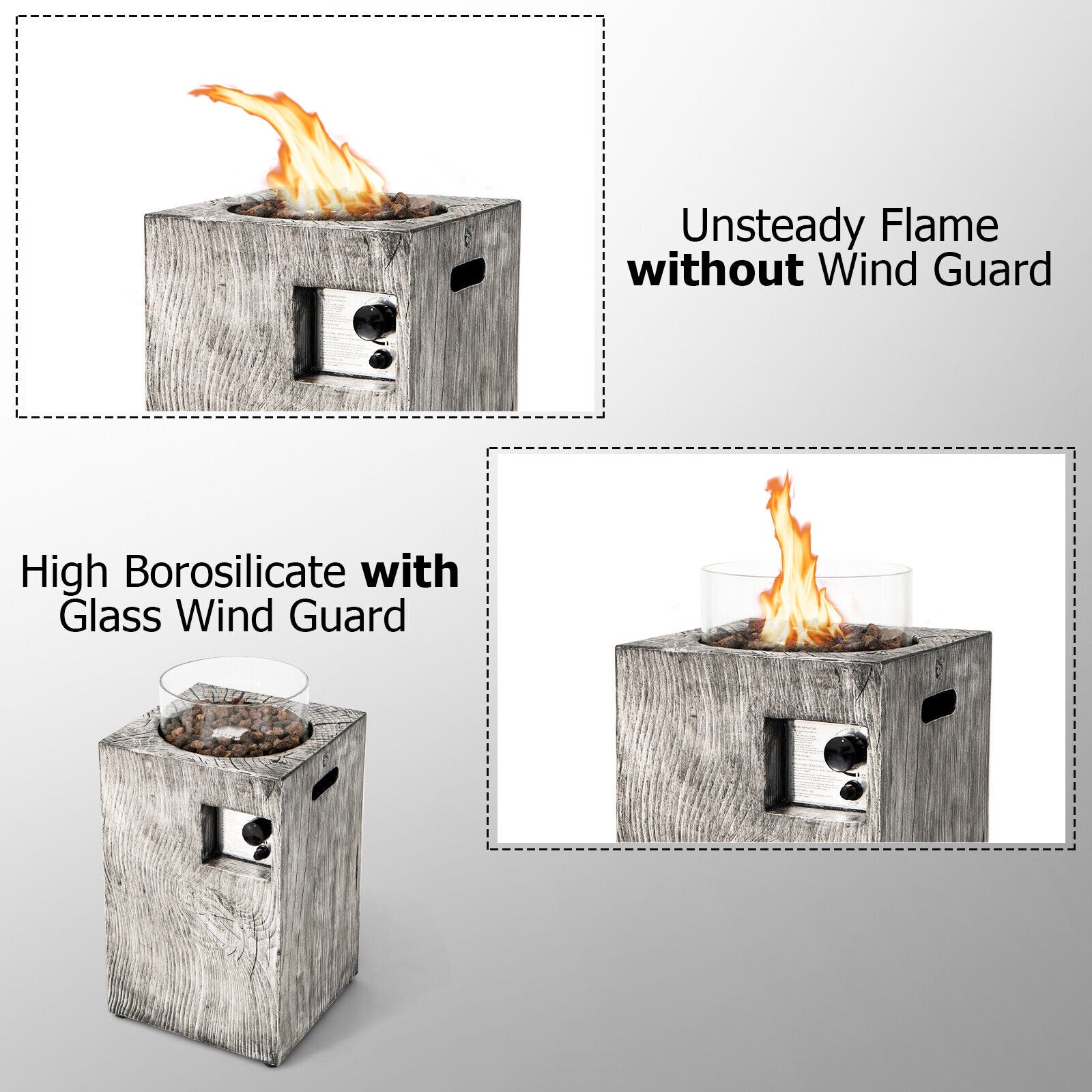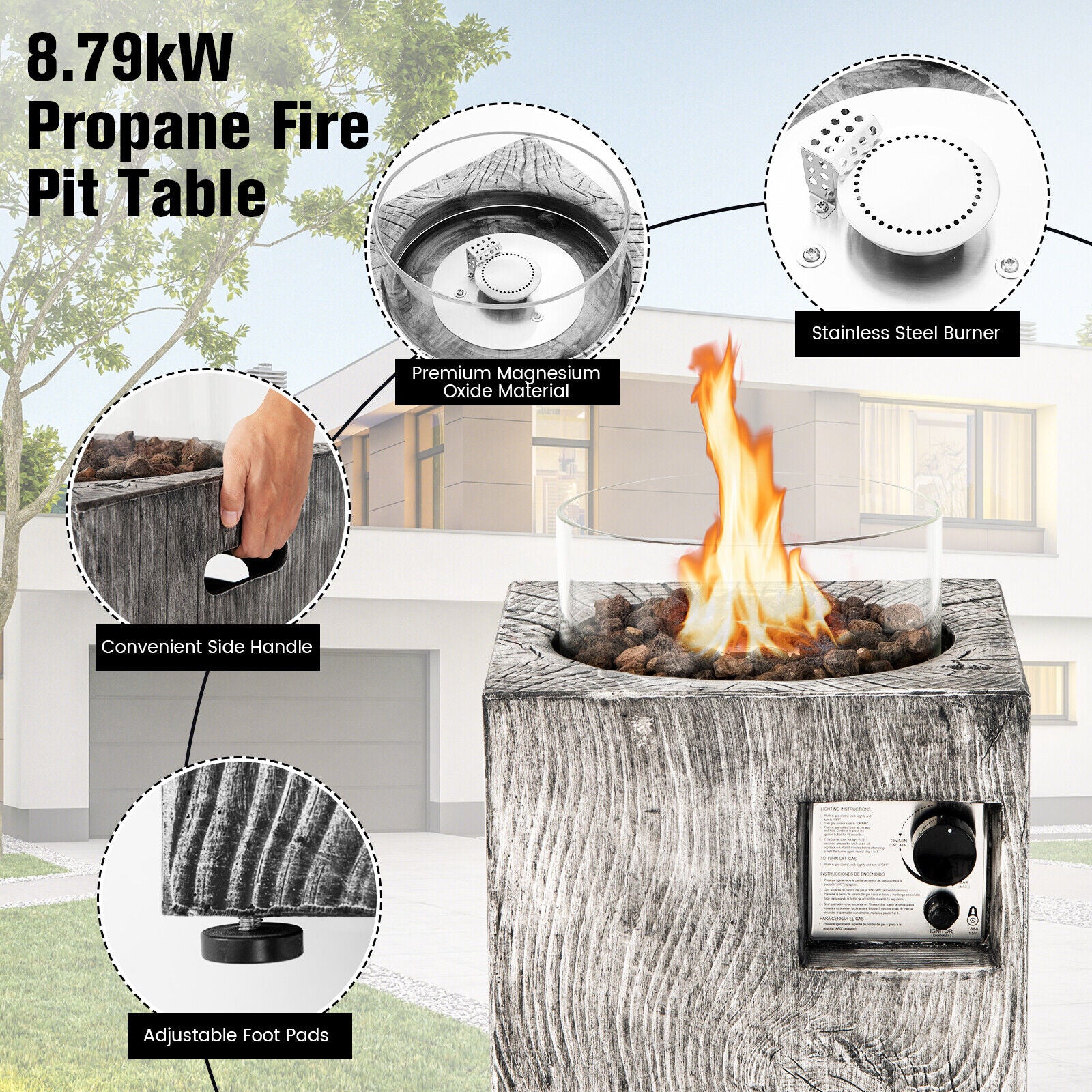 8.79 kW Propane Gas Fire Pit Table Outdoor Square Fire Table with Wind Guard
