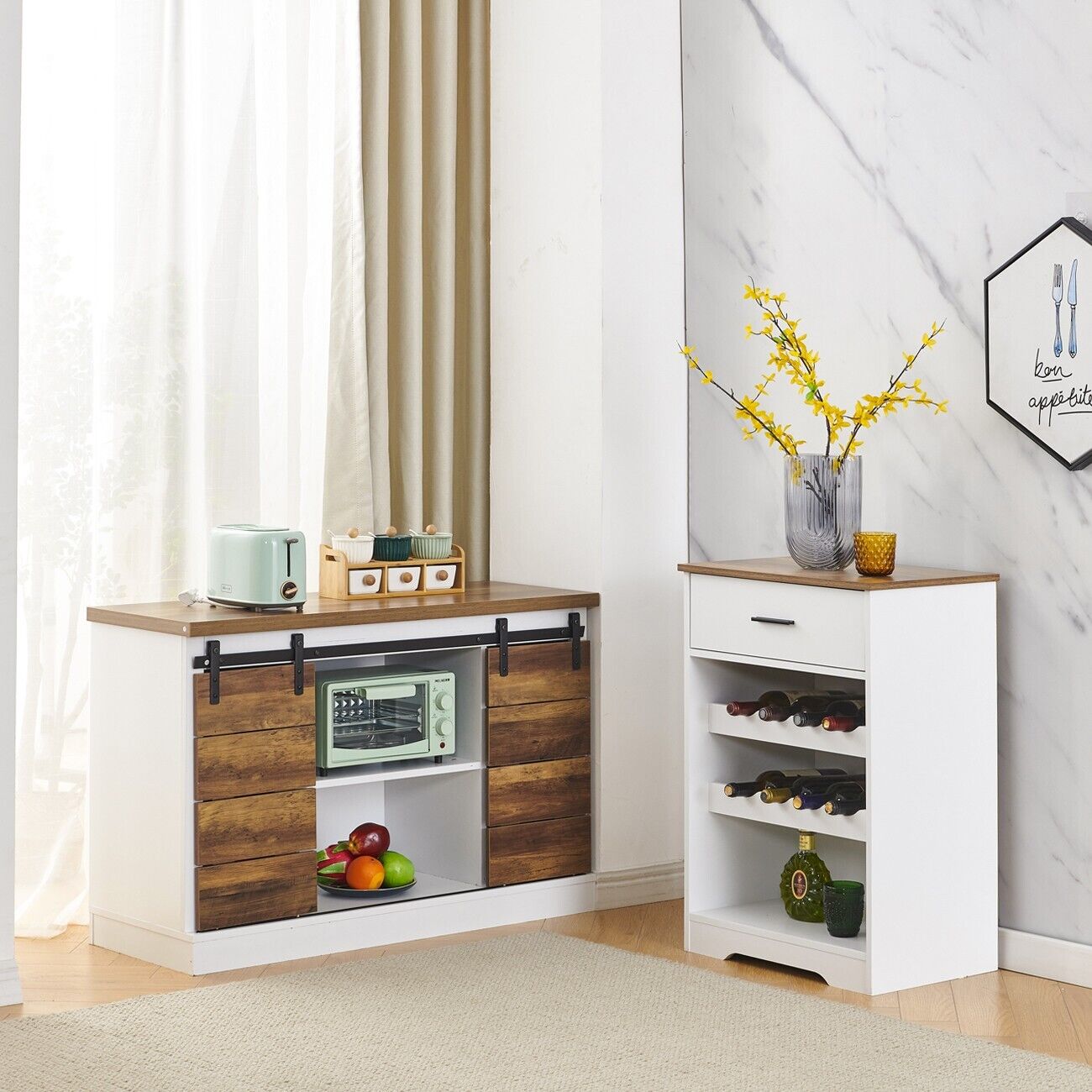 8 Bottles Storage Wine Rack with Drawer Wooden Display Shelf Wine Holder White
