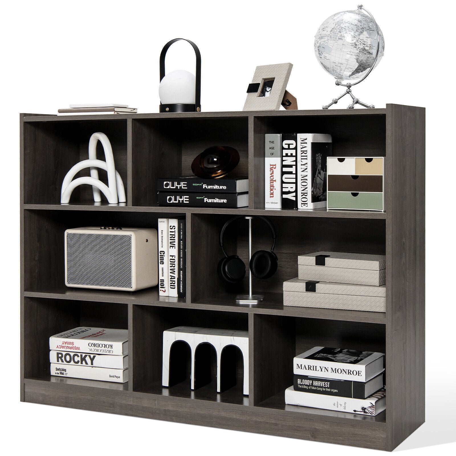 8 Cube Bookcase 3-Tier Bookshelf Display Shelf Storage Organizer-Grey