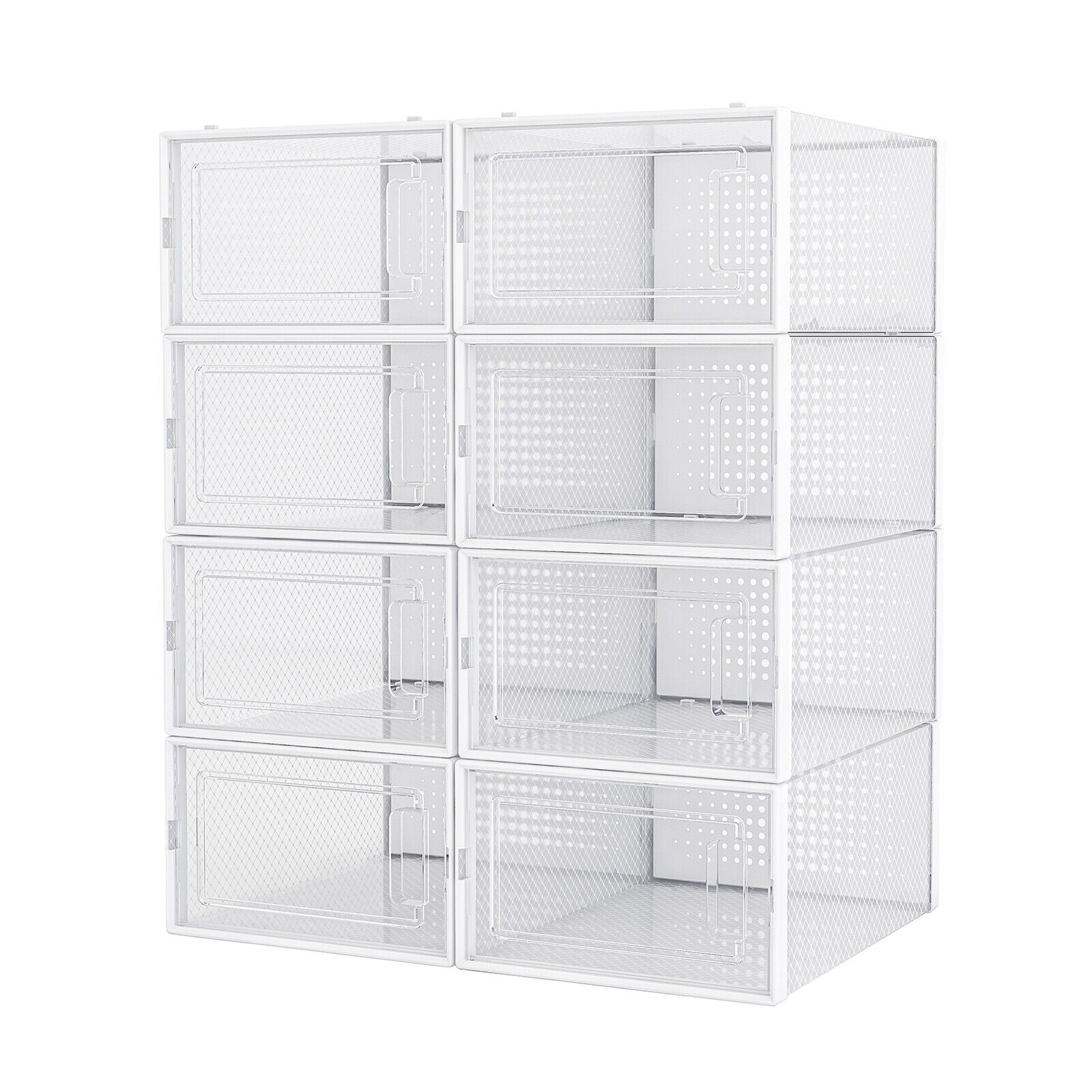 8 Cube White Plastic Shoe Boxes Durable Storage Cabinet Organizer Shelf Cupboard