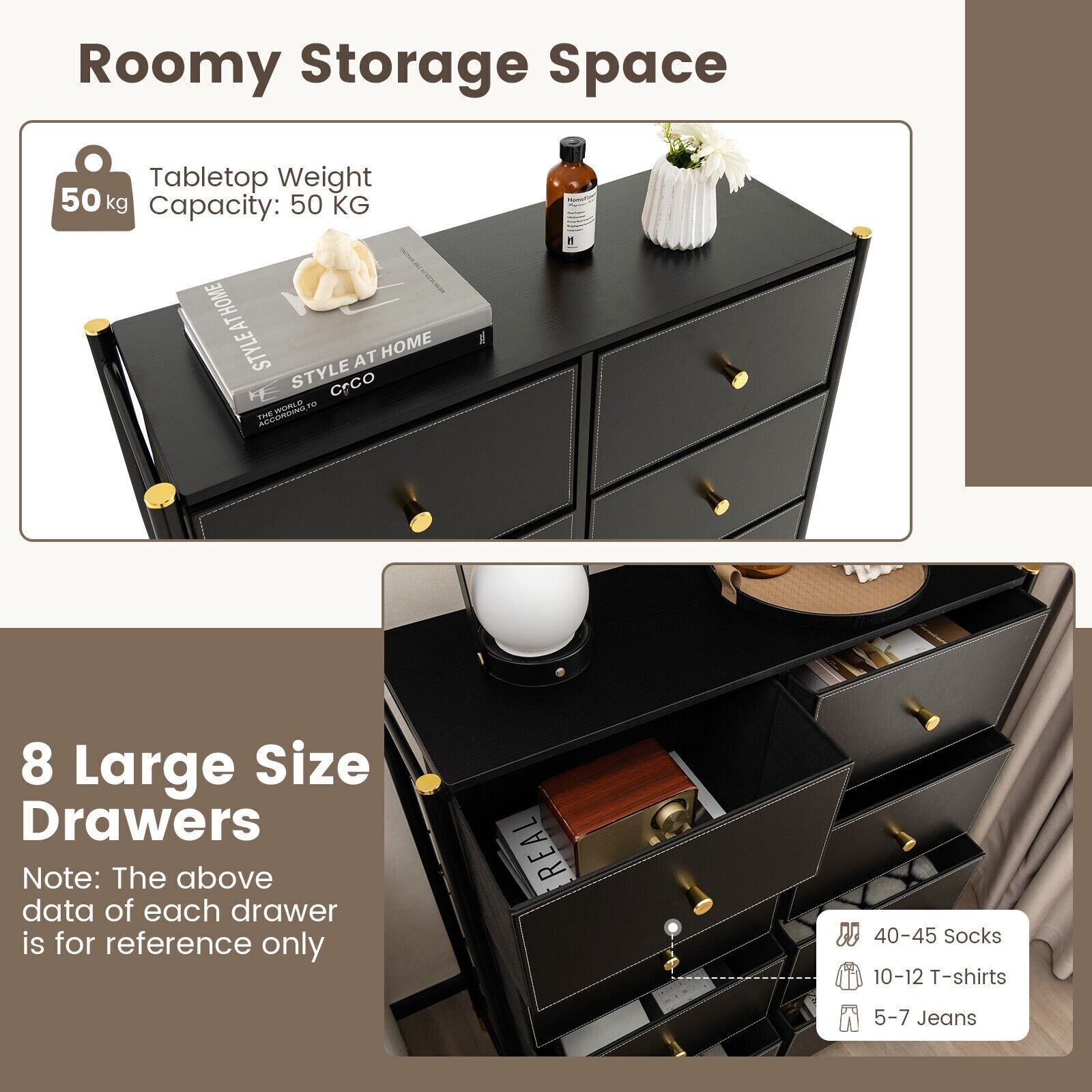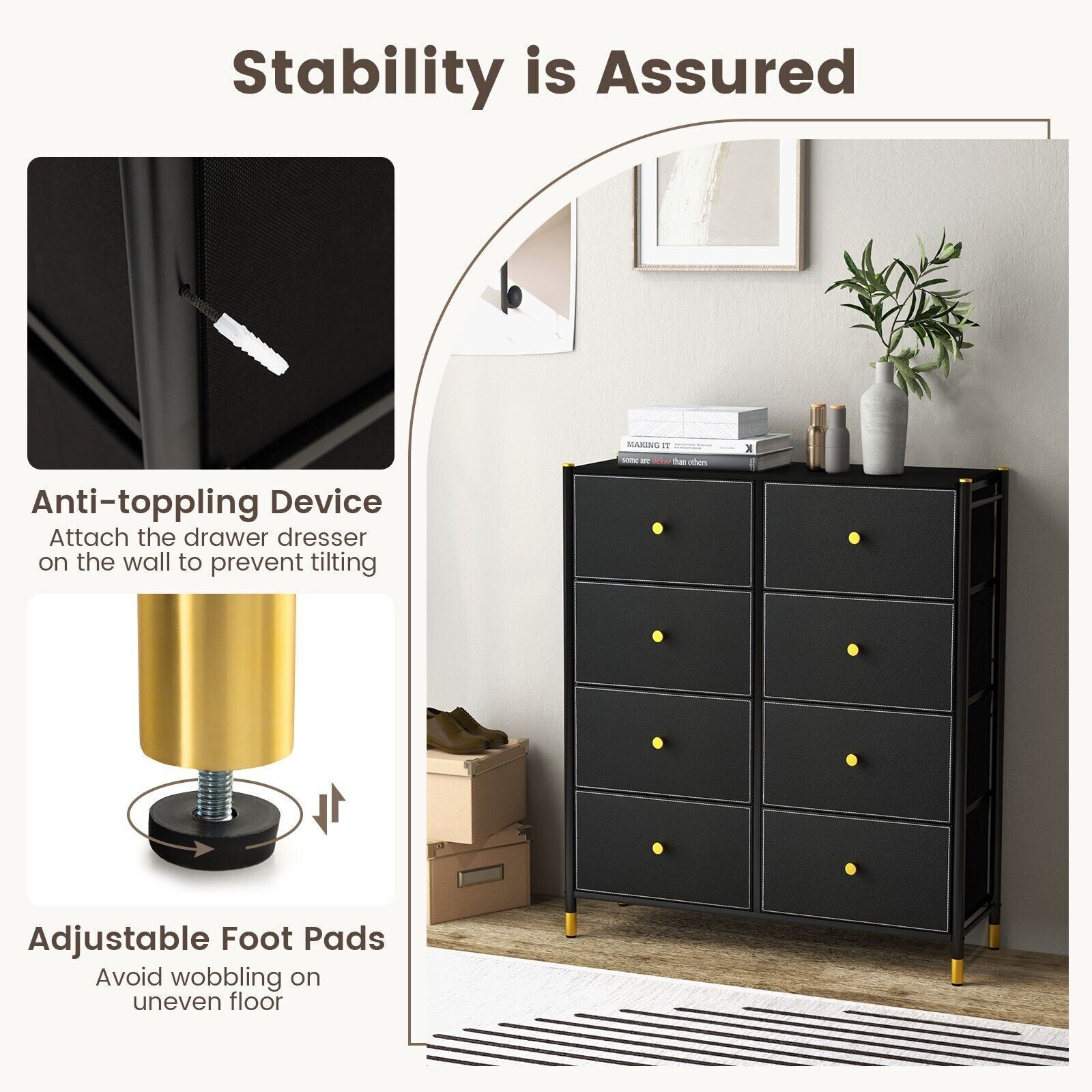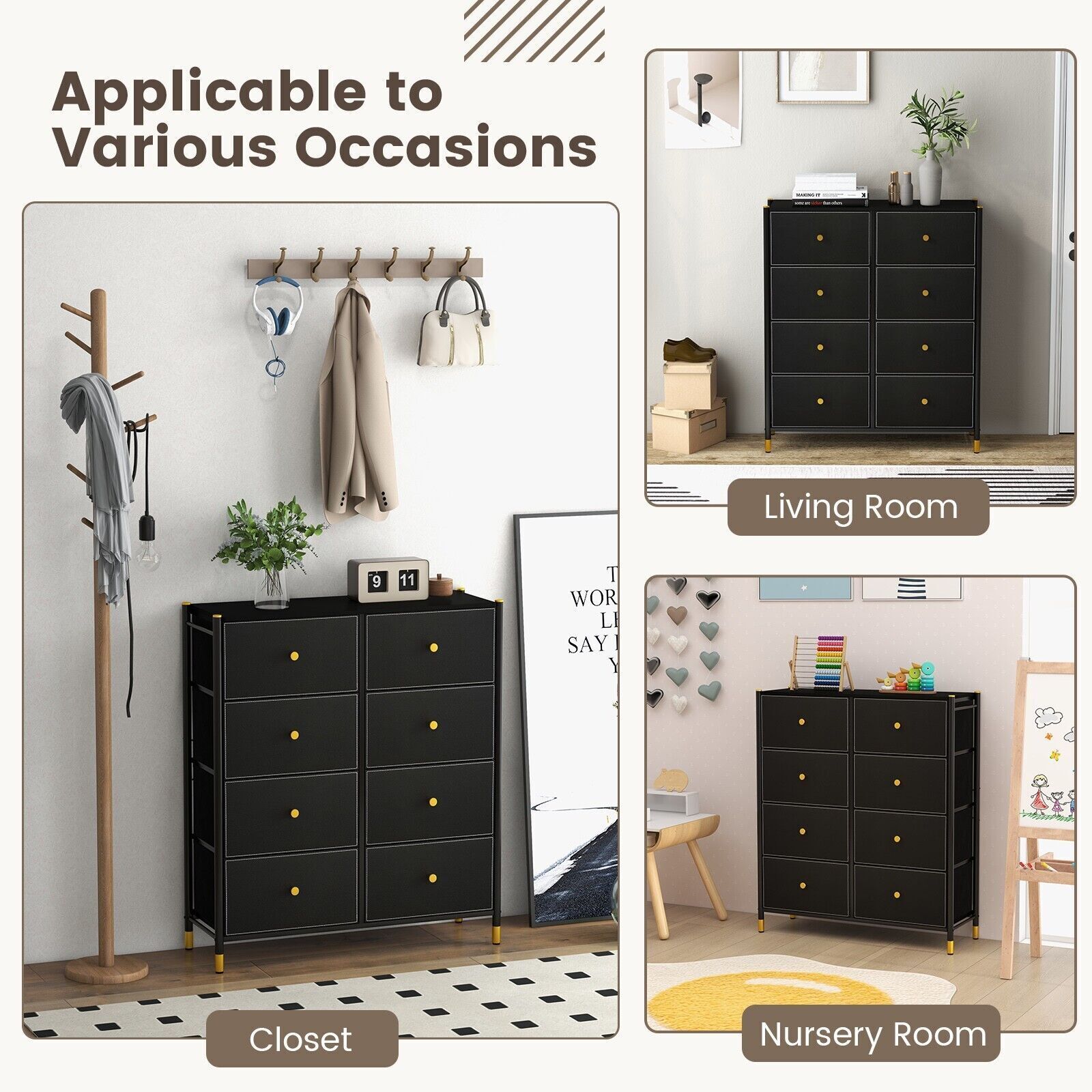 8 Drawers Dresser Tower Organizer Fabric Storage Chest of Drawers Metal Frame