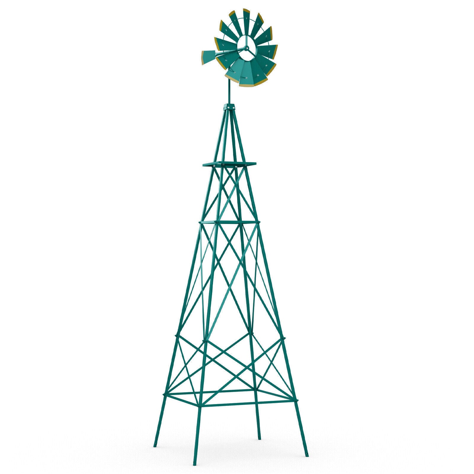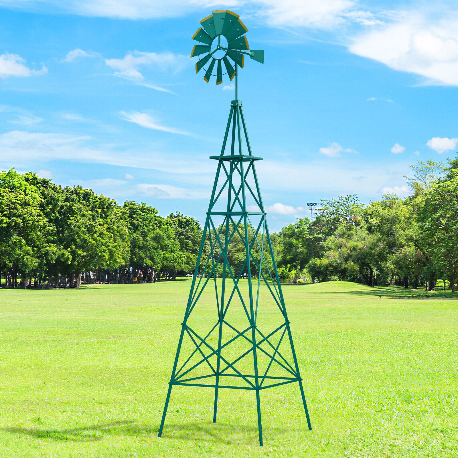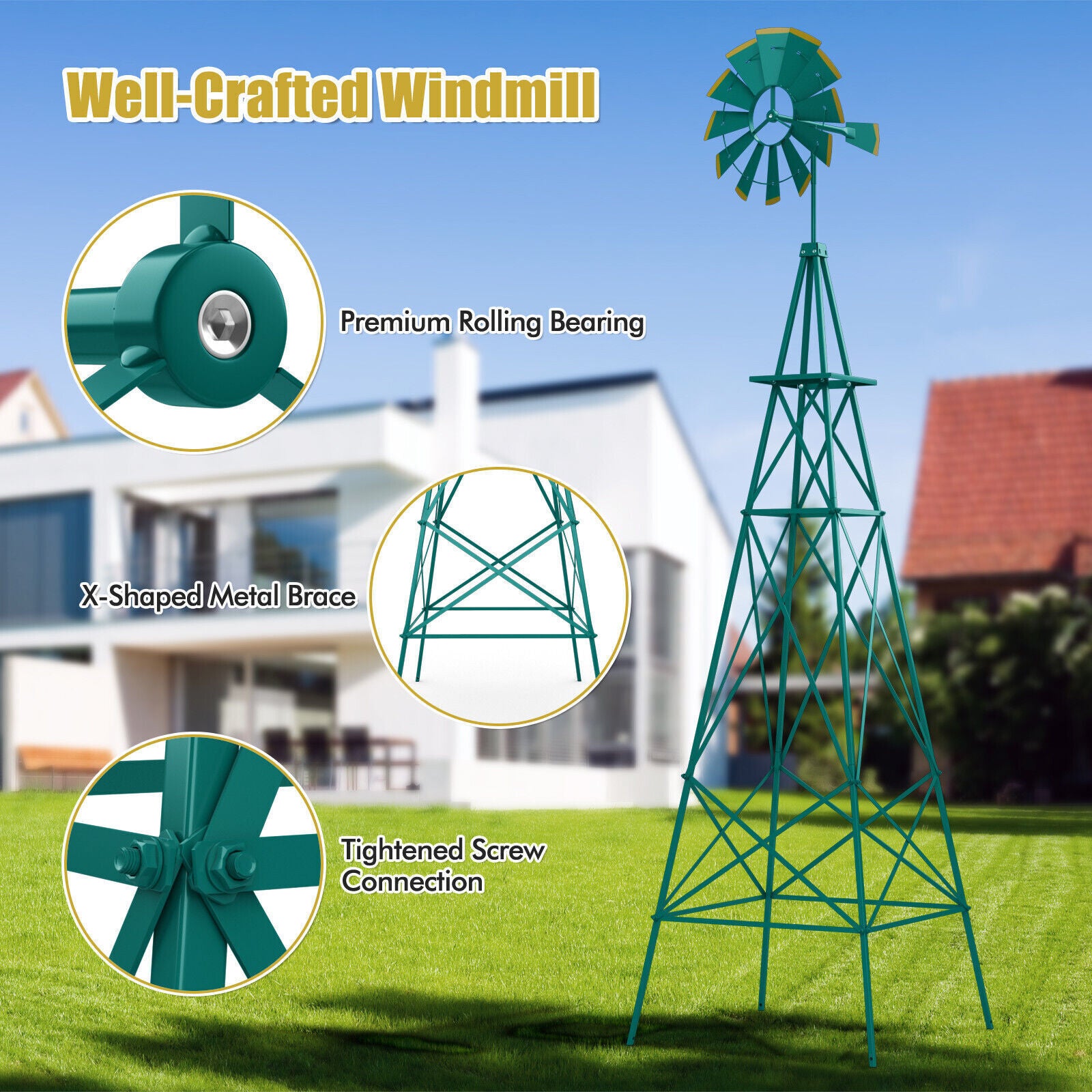 8 FT Ornamental Windmill All-Weather Metal Wind Mill Decorative Weathervane