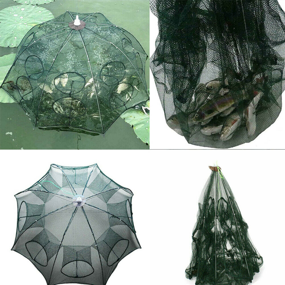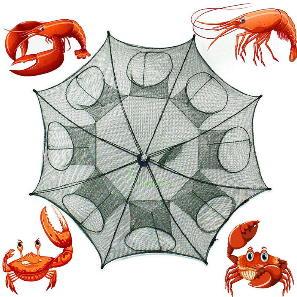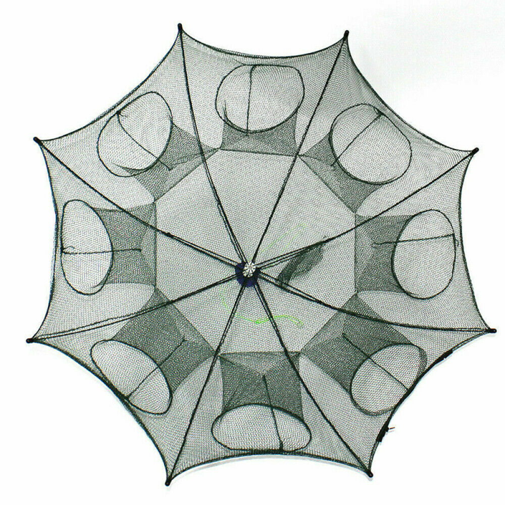 8 Holes Foldable Fishing Trap Net Crab Shrimp Crayfish Lobster Bait Cage Tool UK