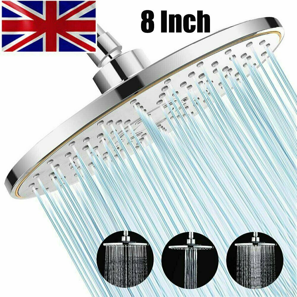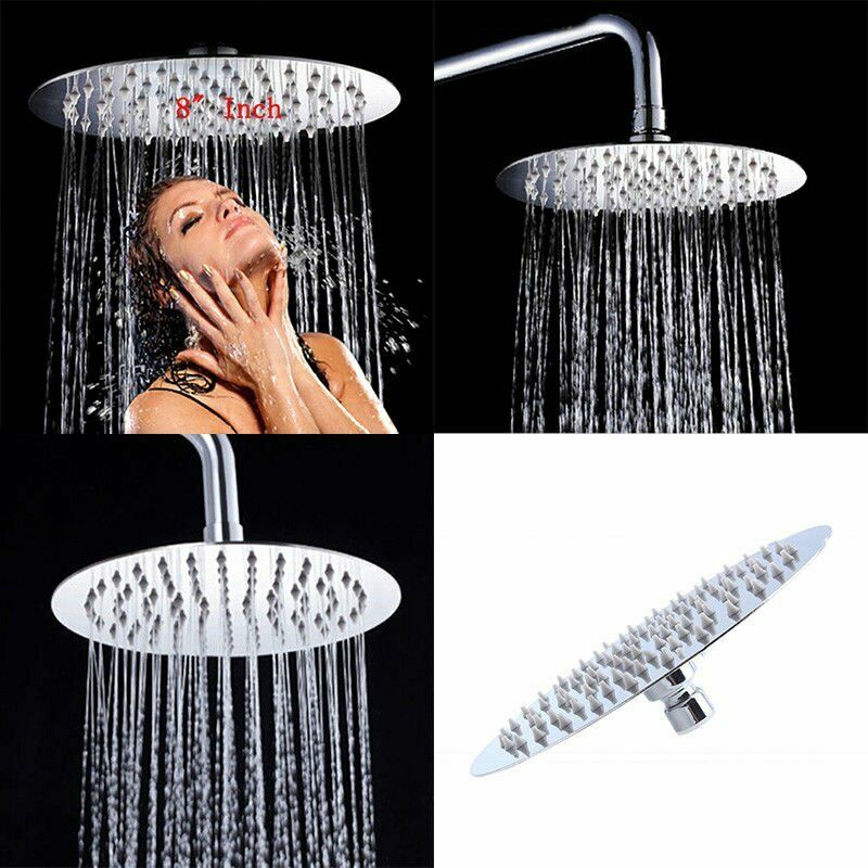 8" Large High Pressure Rainfall Shower Head Hose Set Chrome Bath Water Saving