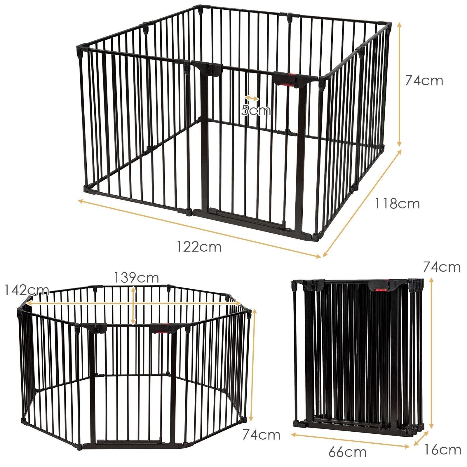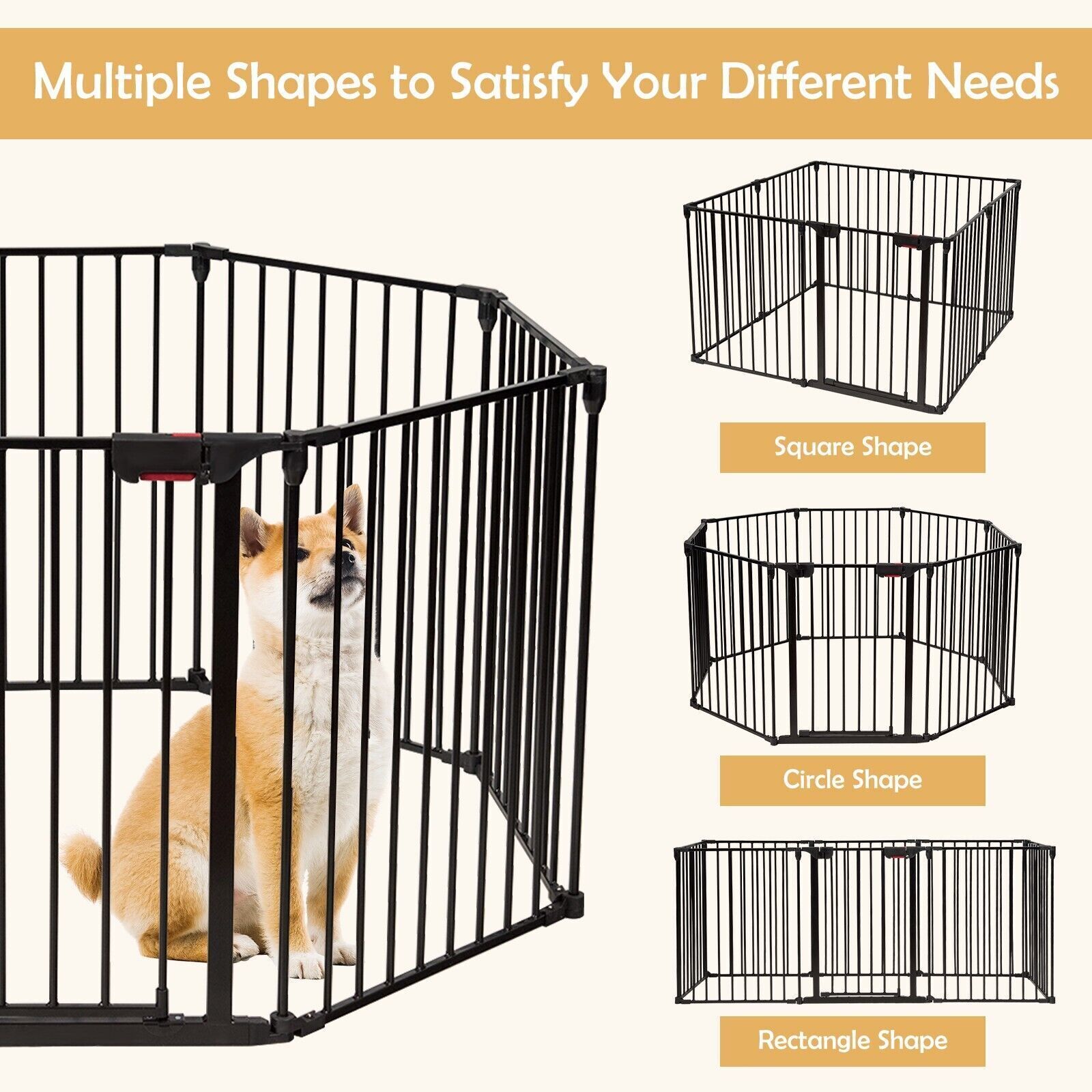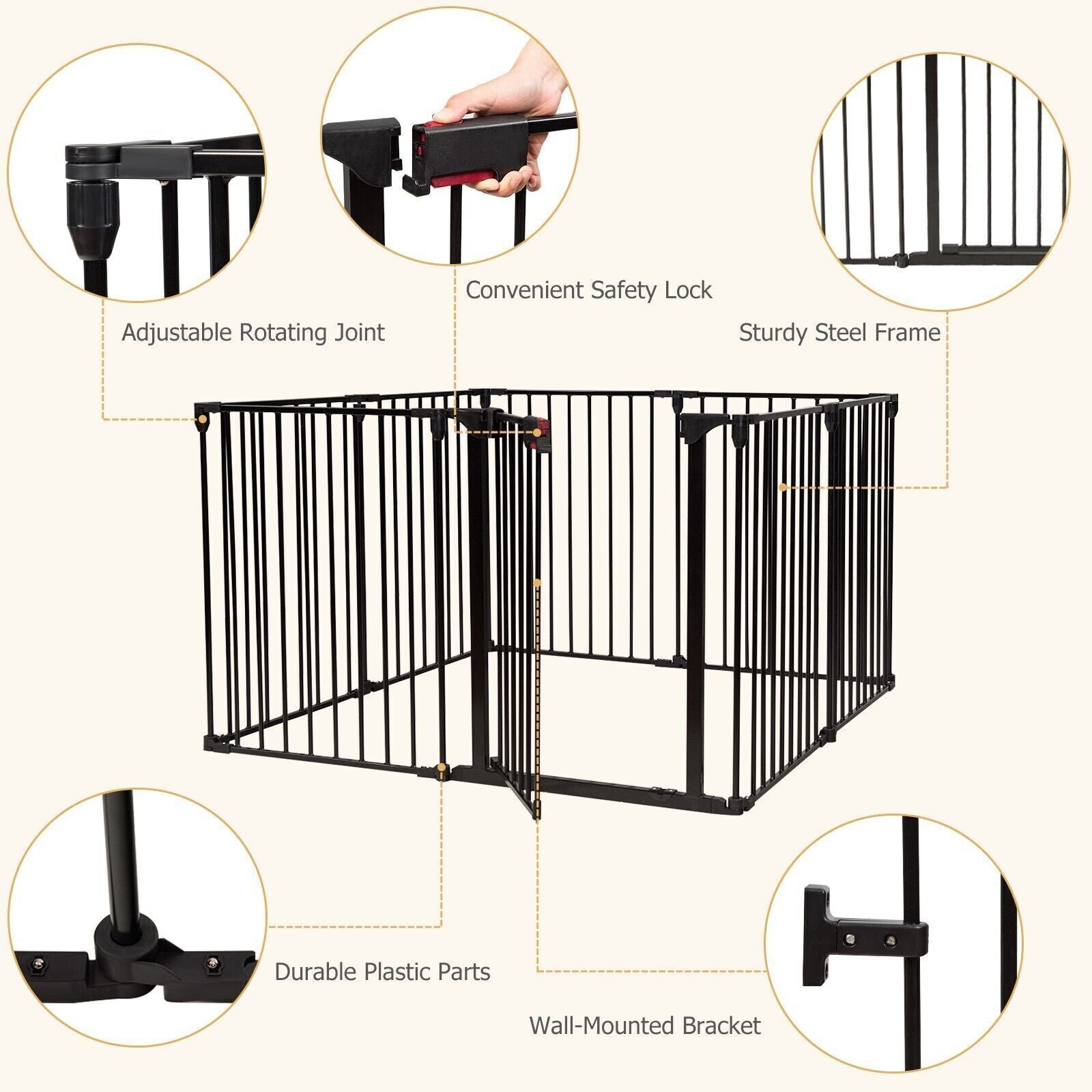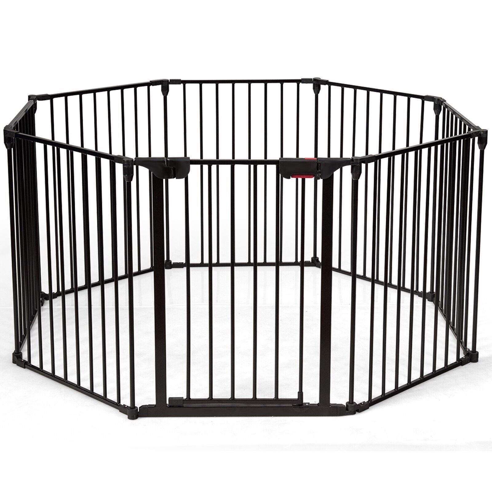 8 Panel Fireplace Fence Baby Pet Safety Gate Playpen Adjustable Room Divider